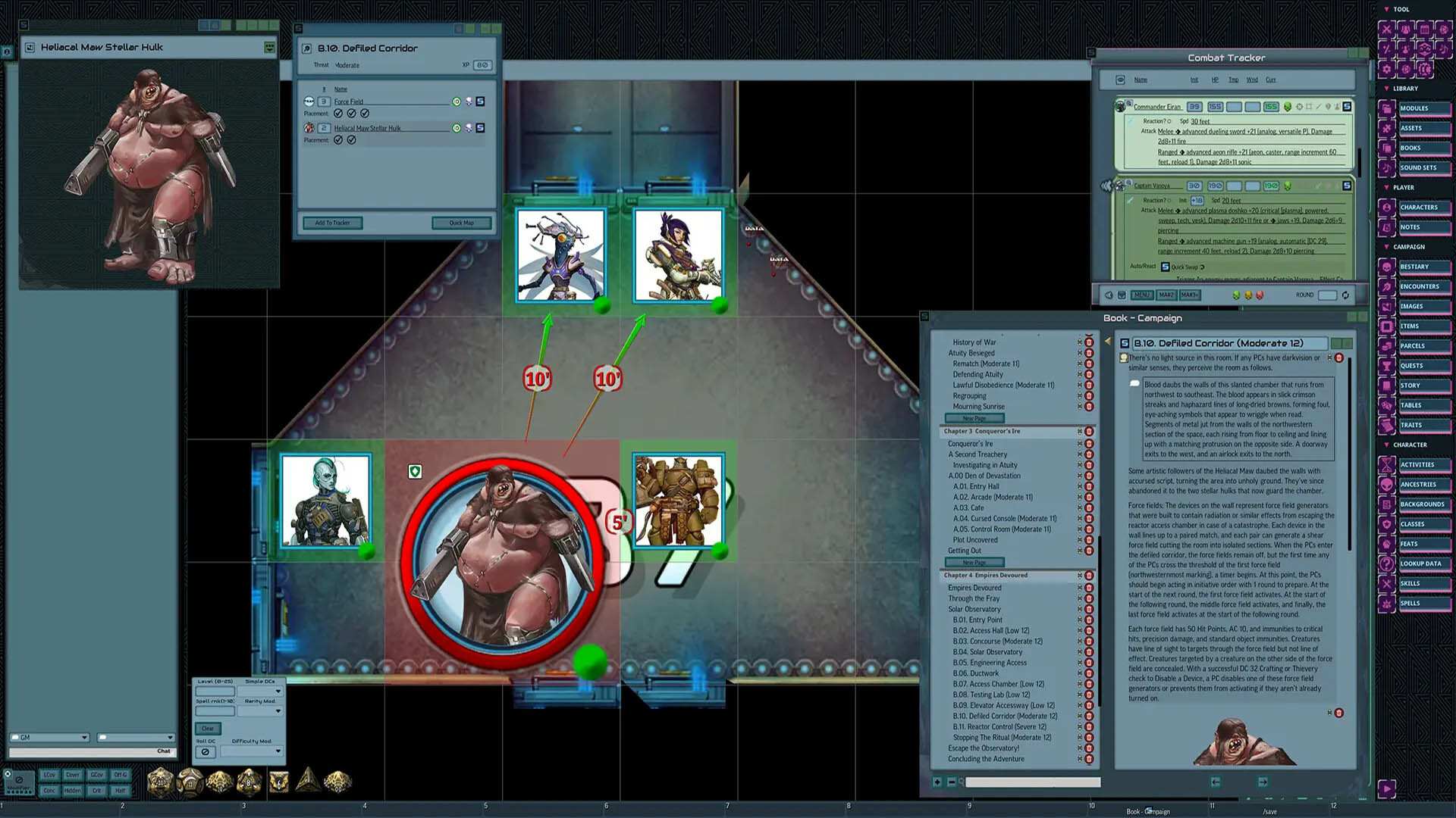 • Tokens for each encounter are all pre-placed in starting locations on the map. You can edit these on the fly.