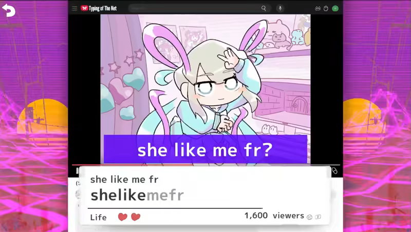 NEEDY STREAMER OVERLOAD: Typing of The Net is a typing game in which you enter internet lingo in a call-and-response format with a girl (OMGkawaiiAngel) who has a strong need for approval.