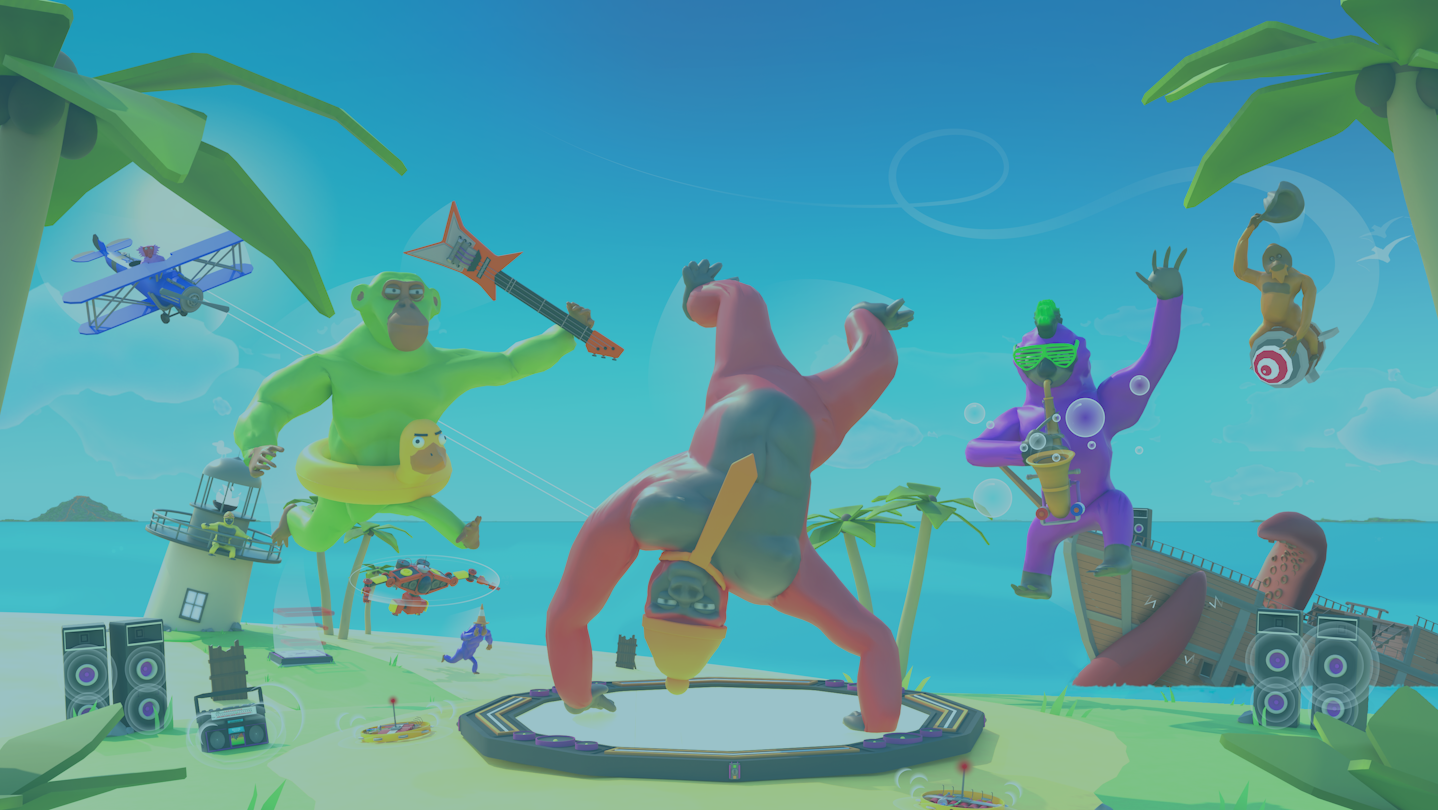 Join into a private lobby with friends or venture into public parties for worldwide fun! Voice chat keeps the energy loud and chaotic as you fight, fling bananas, and battle for the beat. Modes include: Free-For-All, Teams, Infected, Payload, Banana Grab, Ape Arsenal.
