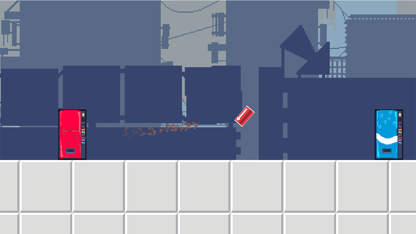 Control a can of cola, spray out soda, and reach the target through differect mechanisms before all soda is depleted.