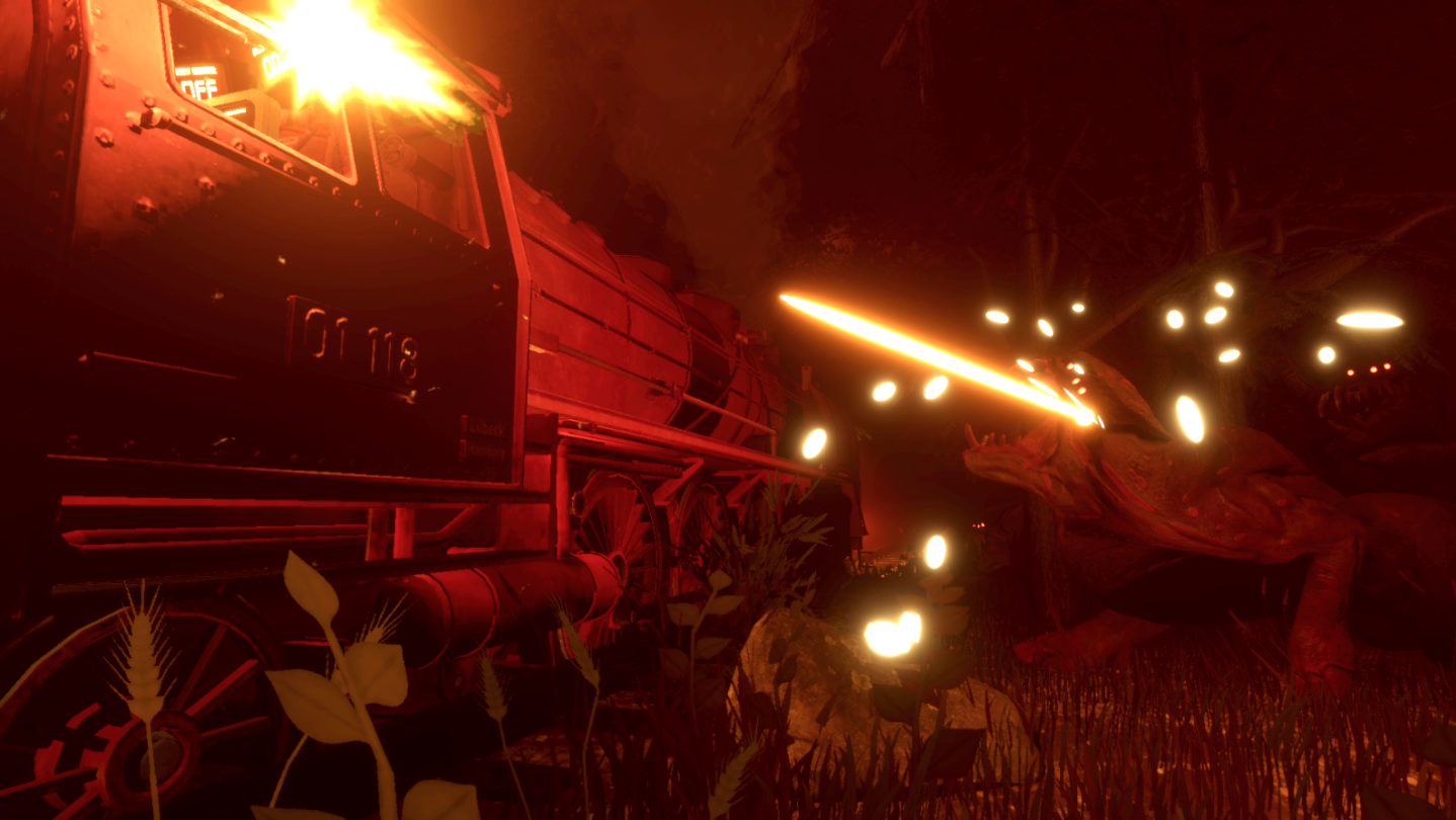Transfer supplies with a Train in a post apocalyptic world filled with creatures that you need to fend off to survive and do your goal