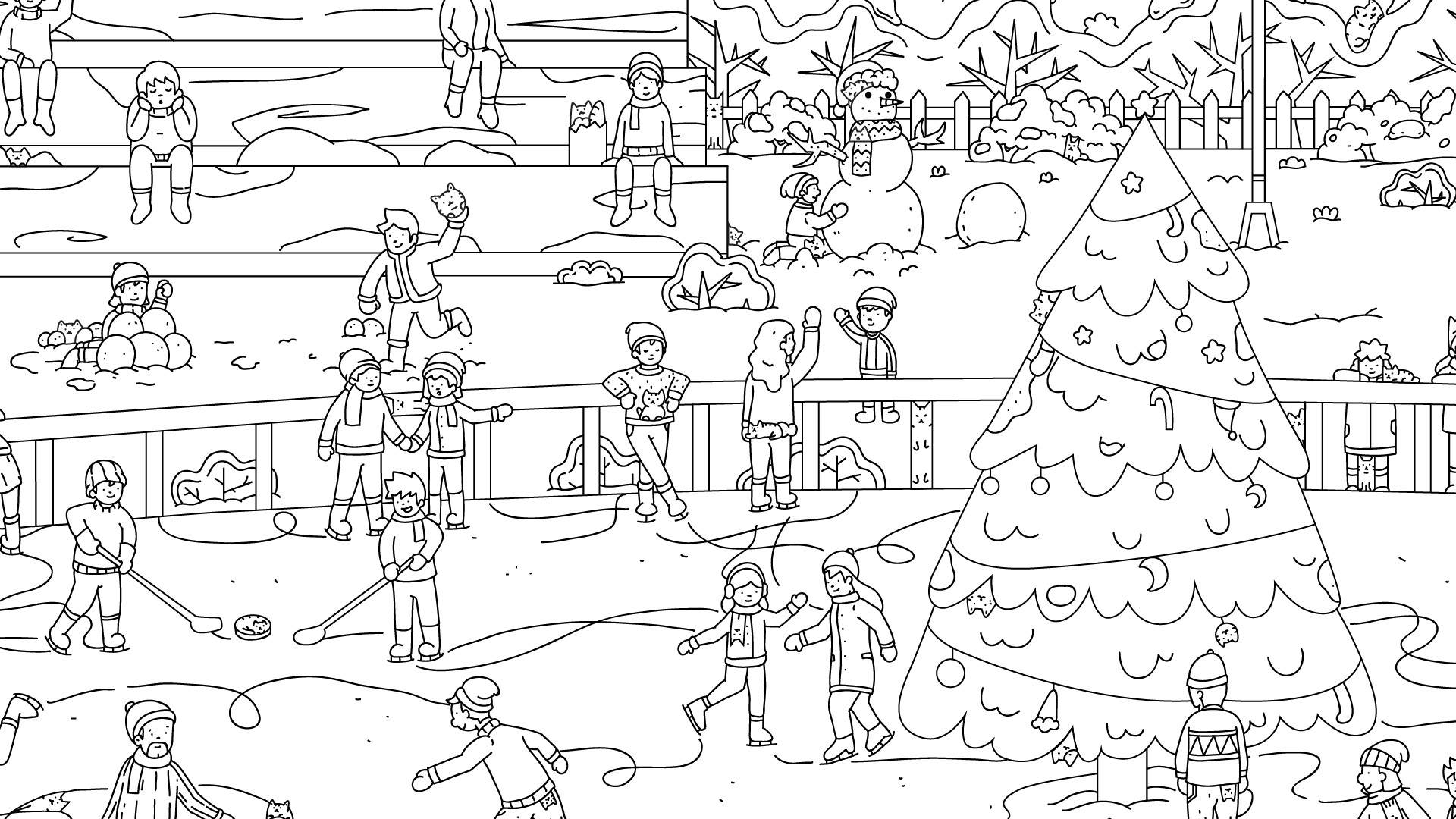 Glide across the festive ice rink while searching for hidden cats in the wintry scene.