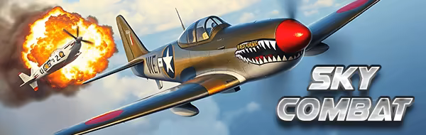 Sky Combat is a fast-paced WWII aviation game where you race to the finish in iconic fighter planes. Use powerups like machine guns, missiles, and boosters to outmaneuver opponents in thrilling air battles. Speed and strategy will decide the winner!