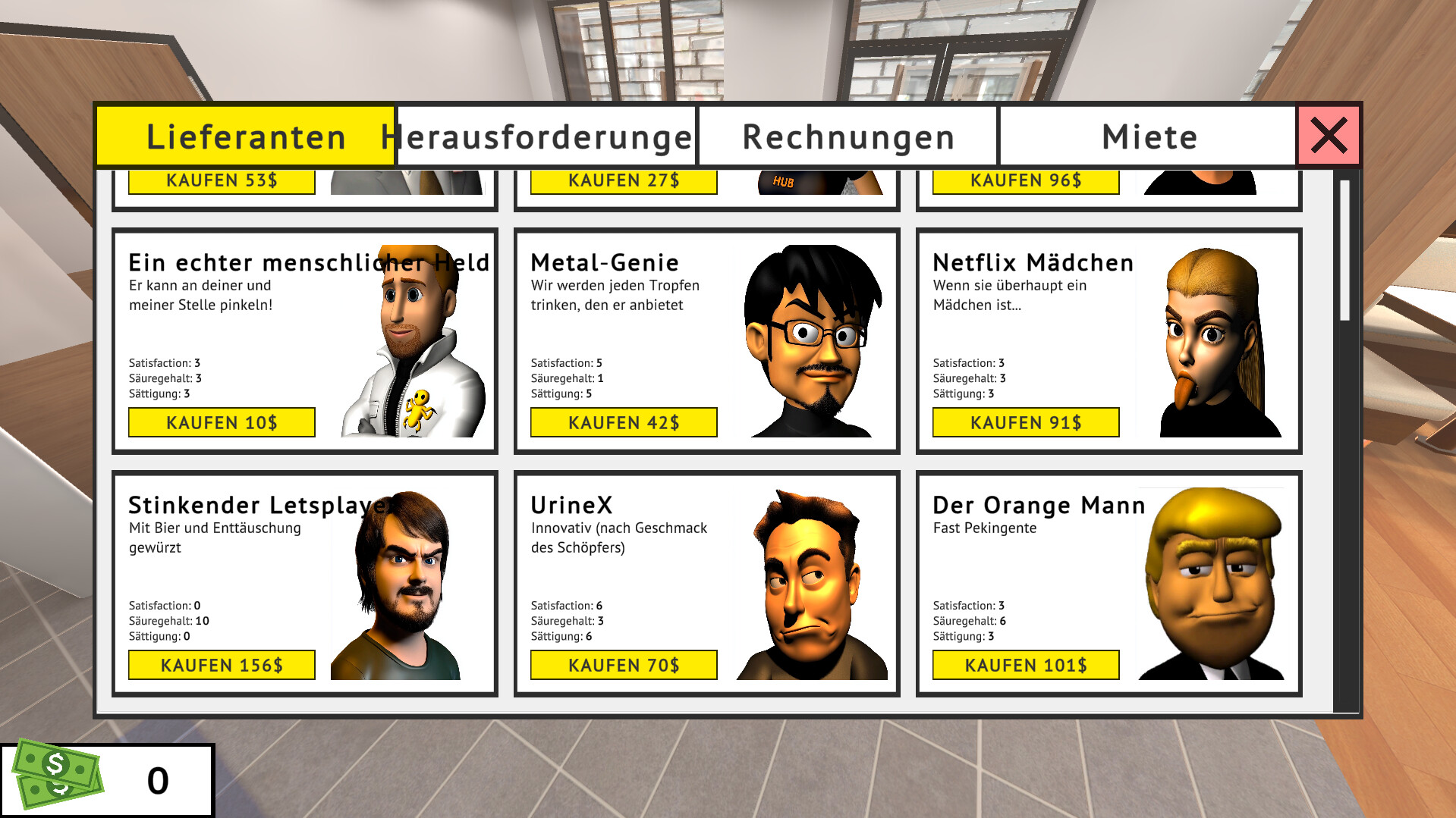 • Die Fähigkeit, auf Simulator-Entwickler in 8 verschiedenen Arten zu pinkeln