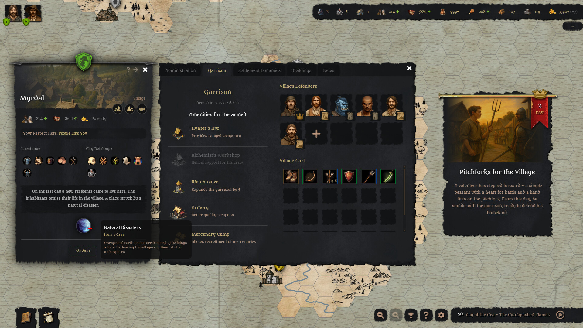 Thanks to the Garrison System, you can now recruit and arm defenders (chieftain, volunteers, or mercenaries) and upgrade them with buildings like: