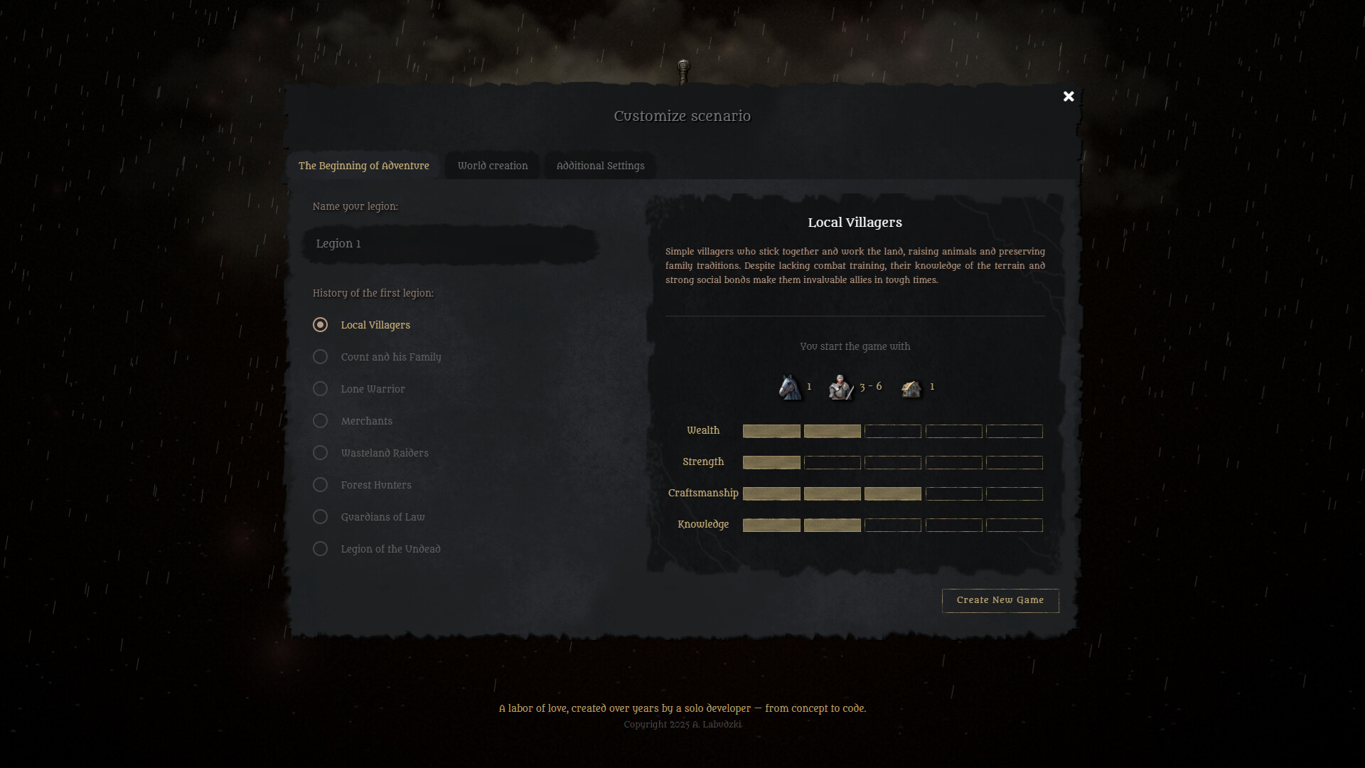 Choose your starting legion – each with different gear, gold, warriors, and reputation. Will you begin with a settlement under your control… or fight to earn it?