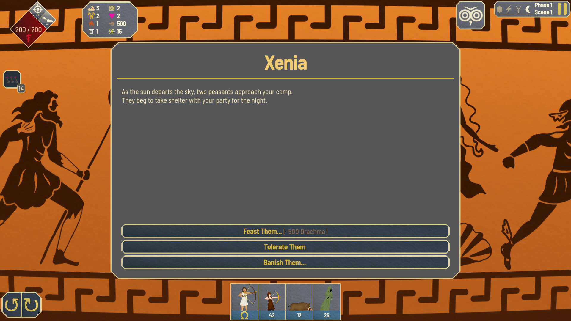 In Polytropos: A Tactical Odyssey, each playthrough brings you new randomly generated enemies, events, and allies. Your decisions will shape the encounters you face and the development of your hero. Your hero will acquire heroic epithets granting permanent unique effects and learn godly prophecies to turn fights in your favor.