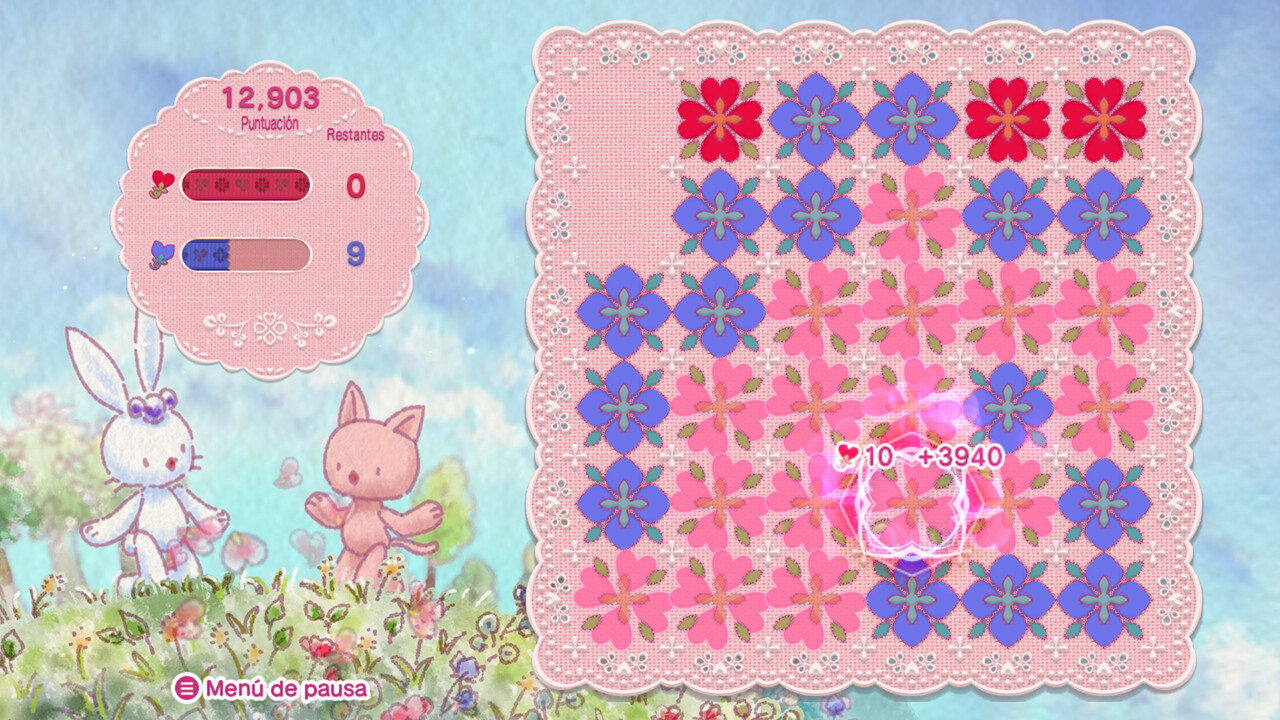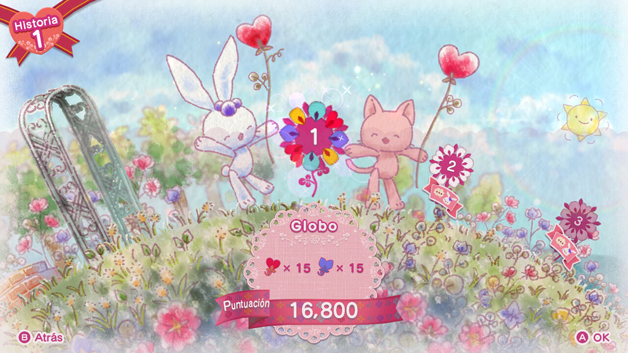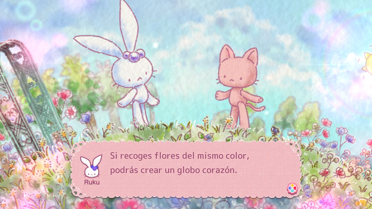 Una historia adorable que parece sacada de un libro de cuentos sobre las aventuras de la conejita Ruku y el gatito Lish. Fabrica globos corazón con los puzzles de flores y vuela por el cielo. ¿Hasta dónde podremos