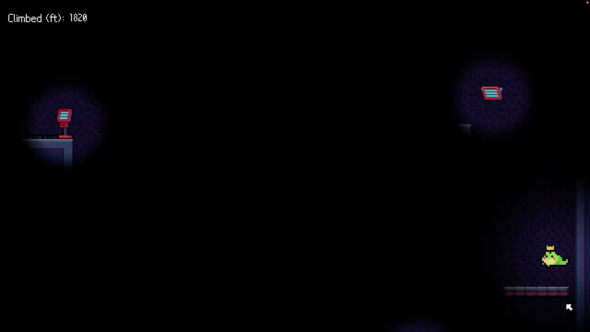 Cra cra! È tutto nero come la pece qui intorno, ma dove diavolo sono finito? Devo saltare come un matto per uscire da questo pasticcio! Occhi spalancati, è ora di trovare il prossimo appiglio. Regola la potenza col mouse e salta… ma sul serio, perché sono intrappolato qui… cra cra?