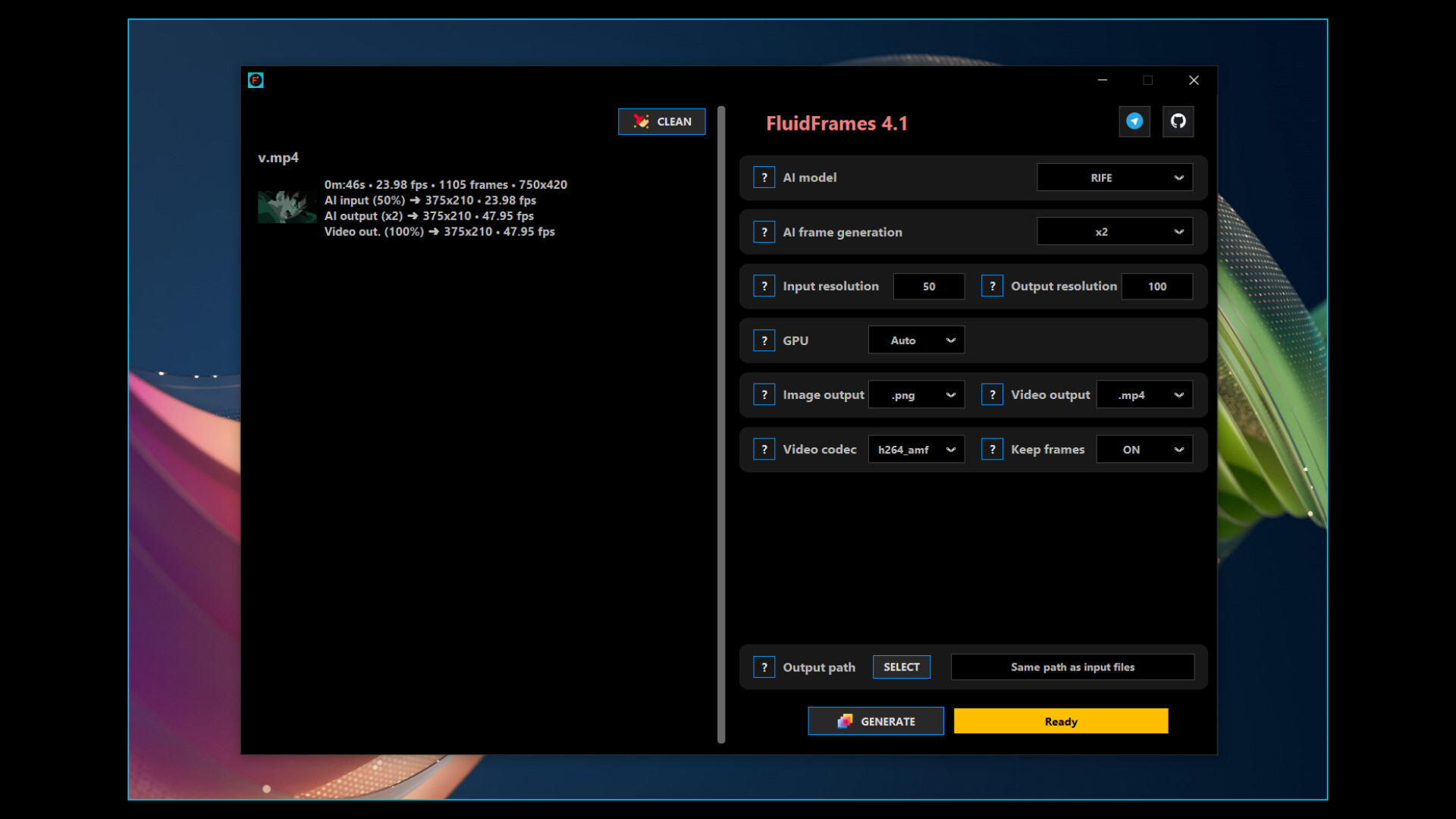 FluidFrames uses an AI that can multiply the FPS in a video, this is done by taking 2 frames of a video and calculating the intermediate frame. In a manner identical to FSR 3 FG or DLSS FG.