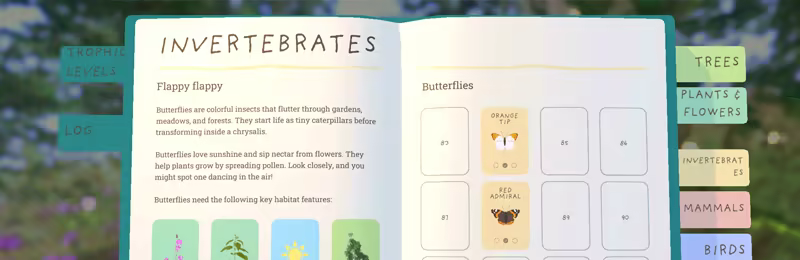 Get to know every plant and creature in your nature book, understand what they need to thrive, and see how they fit into the wider ecosystem and food web.