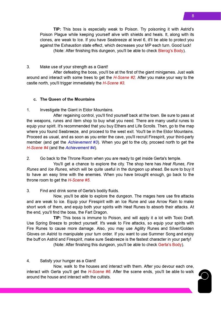 Giant Wishes: Memories - Guide is a walkthrough document that contains spoilers for an adult game and reveals how to unlock sex scenes. Because of that, it contains a mature discussion and words that refer to sexual activities. It's appropriate only for adults.
