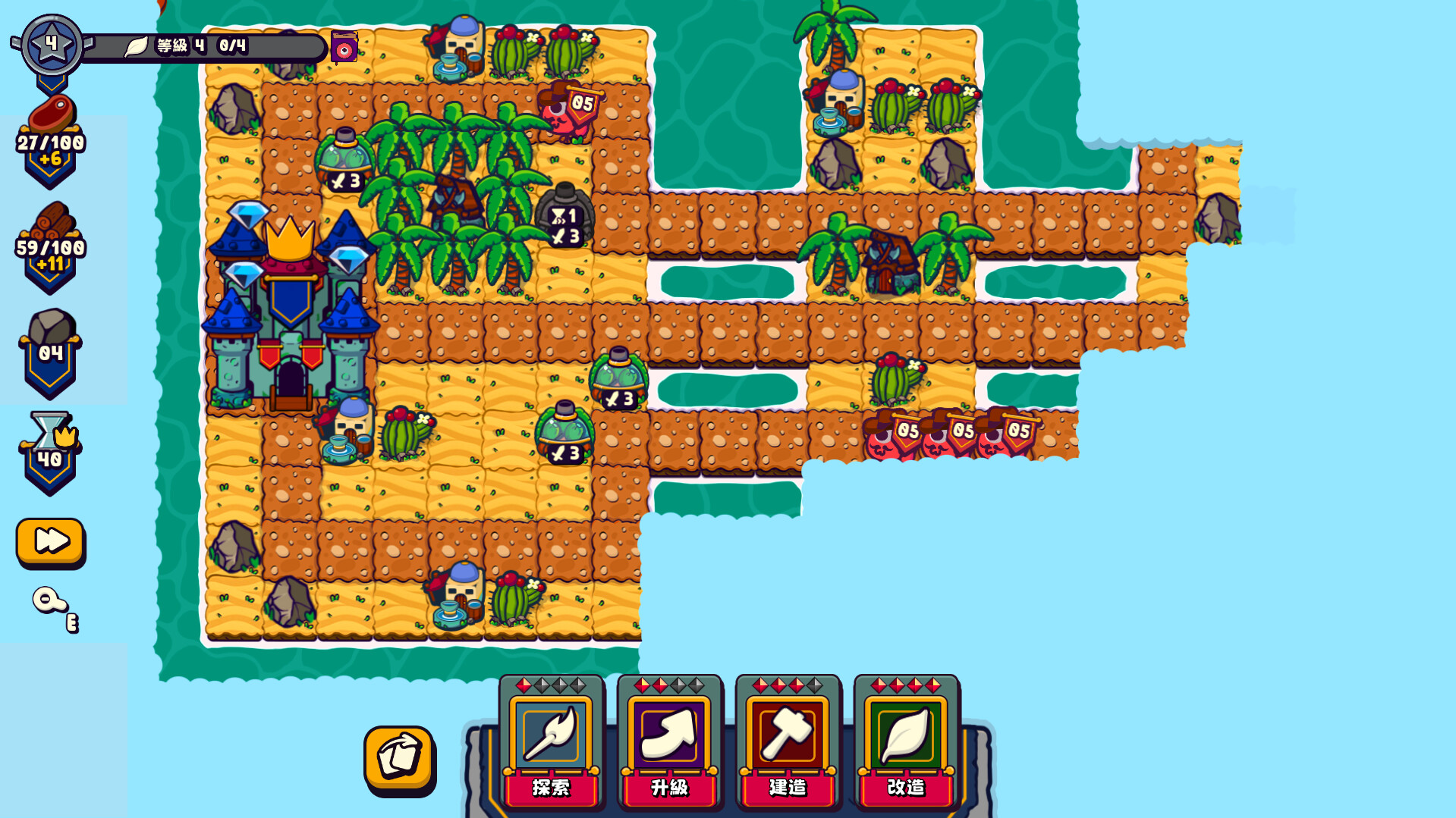 你將在一張佈滿迷霧的地圖上開始遊戲,透過「探索」行動逐步揭開地形,發現資源、擴大防禦塔的視野,甚至挖掘隱藏寶藏!冒險與策略並重,每一步都值得深思!