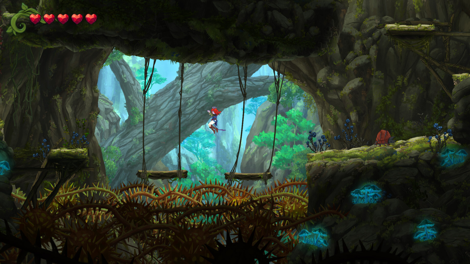 You play as a girl whose arm is wrapped in a living magical vine. It absorbs energy from artifacts and transforms into new abilities, letting you reach new areas and fight in new ways.
