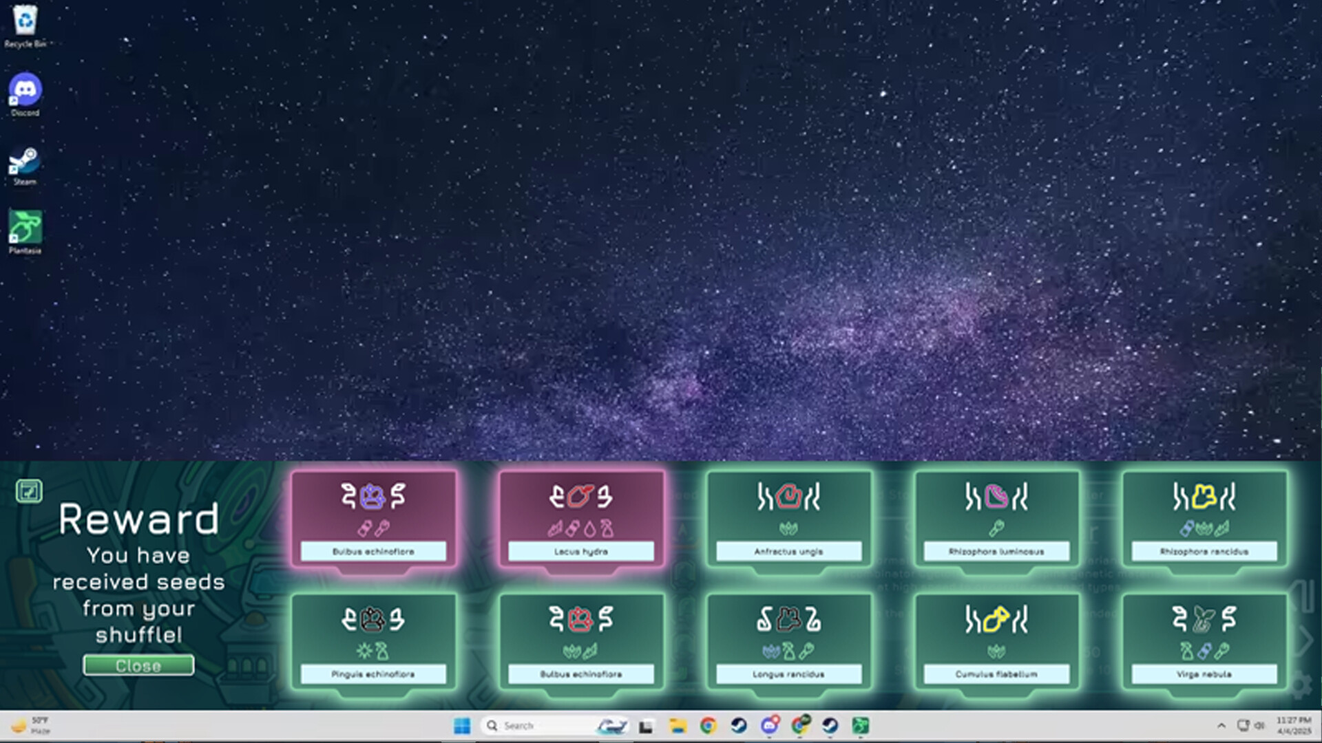 Plantasia is designed to encourage play during small breaks, without disrupting your regular workflow as you transition in and out of other tasks. The game rests on the very bottom of your screen, allowing you space to work and play at the same time.