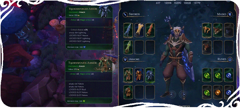 Defeated foes drop mystical runes that you slot into expansive skill trees, leveling up gear and unlocking powerful abilities. Manage your resources strategically and shape builds ranging from glass cannon to extremely tanky.