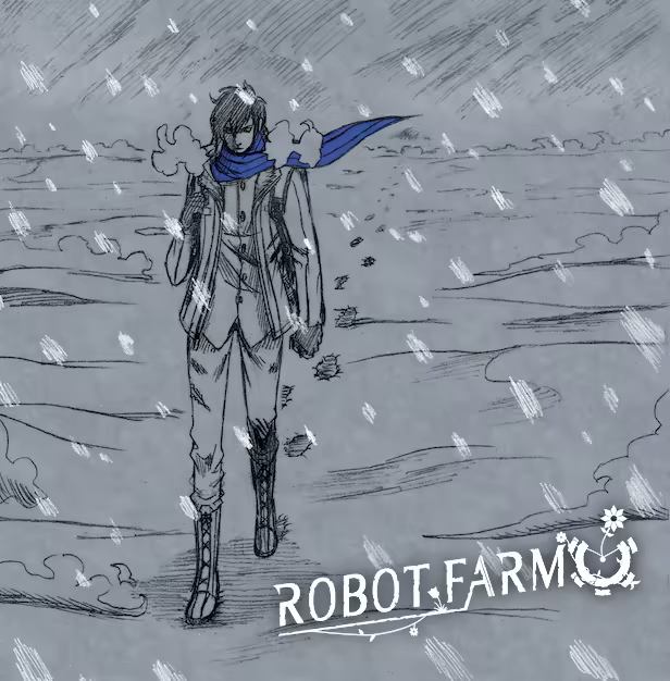 Robot Farm is a Life-Sim RPG set after a cataclysmic war that has ravaged the planet and caused a mass disappearance of all its inhabitants. When people begin to suddenly reappear all over the world, they are awakened with the "memory" of their lives long-past- wanting only to recover and return to their once peaceful lives before this avalanche of strife befell them.