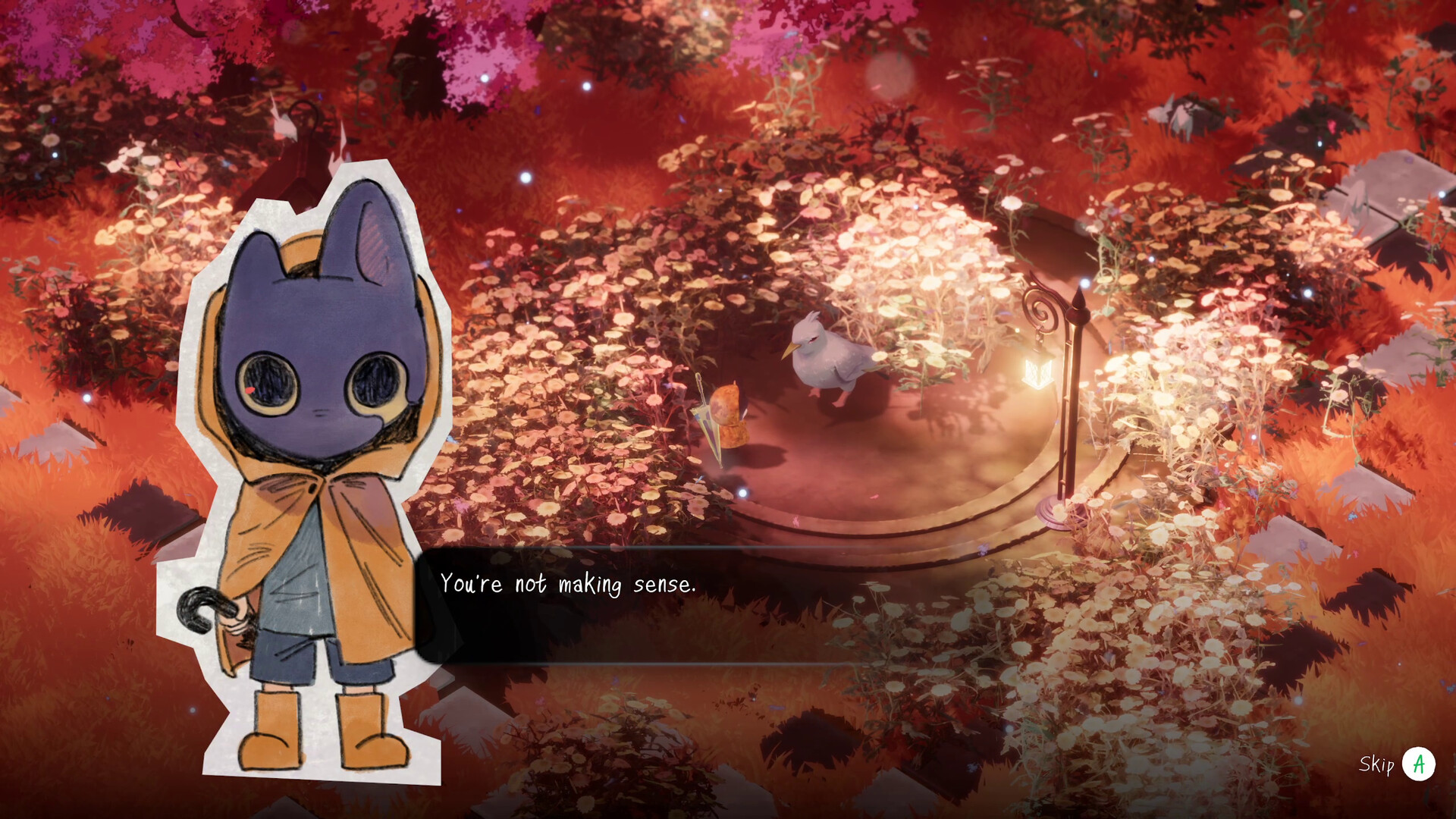 Nilo despierta en una tierra de sueños, armado con un paraguas convertido en arma para repeler criaturas hostiles en este paisaje de otro mundo.