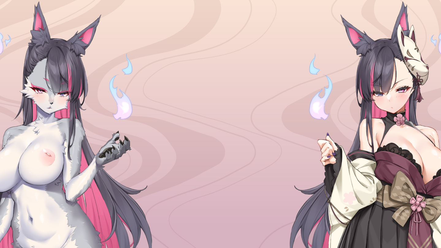 Over 11 types of stream themes for players to choose from, including Maid, Swimsuit, SM, Bunny Girl, Anal, Furry, 2 Girls 1 Guy, and more! Discipline this foxy goddess to increase her Charm and Lewd stats, then get to streaming!