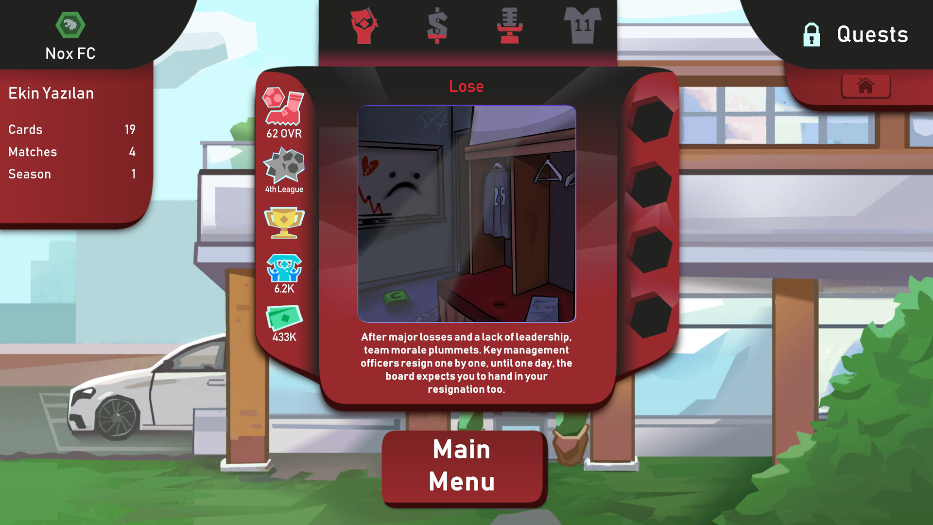Through a season, you will encounter cards to improve your team's strength, morale and value. It is a risk and a mystery to always make the right decisions to gain that power or value your long-term gains and play safe.