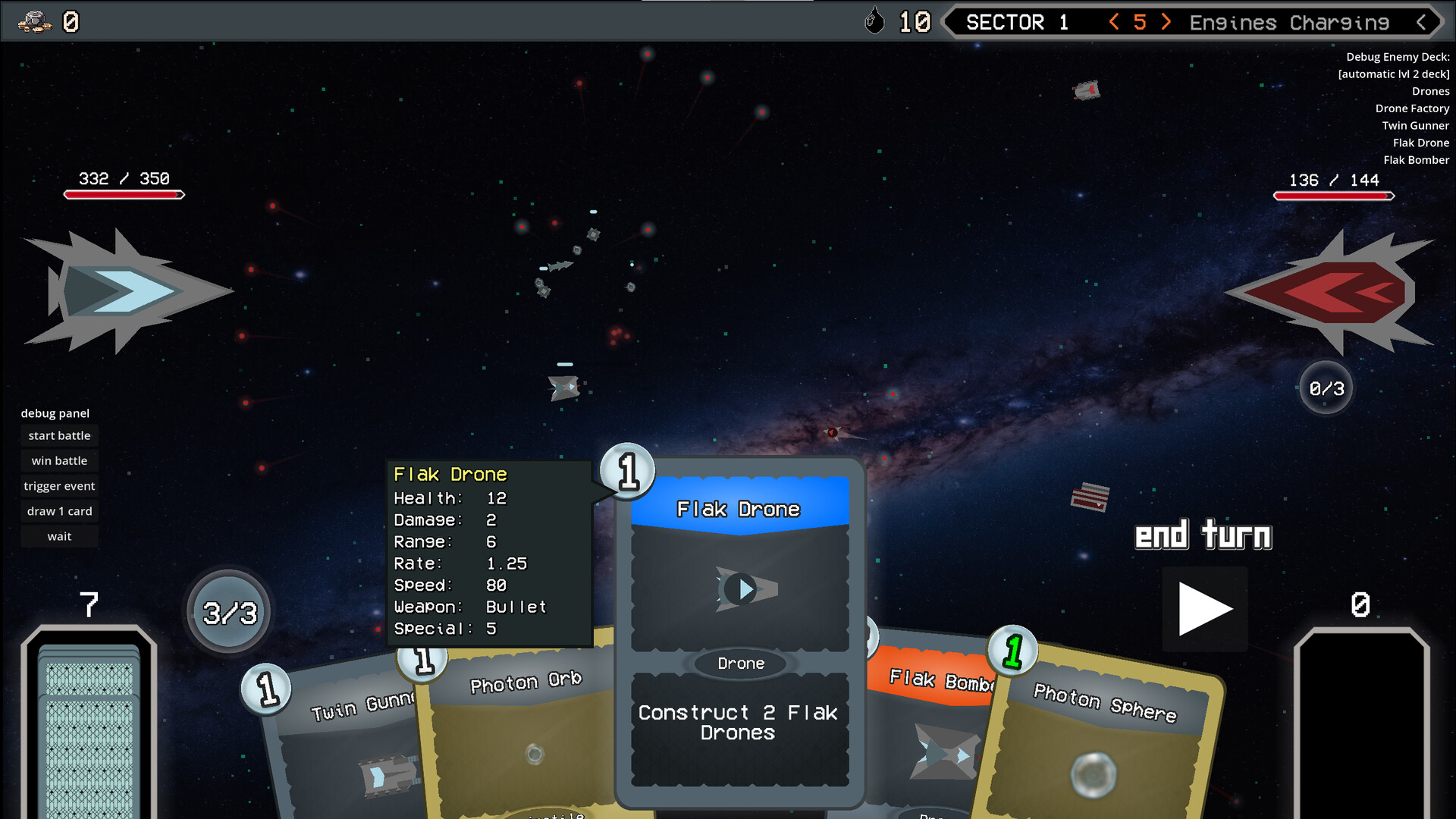 Select a flagship and embark on a journey across a universe on the brink of annihilation. Construct a deck of ships and science, obtain powerful artifacts to enhance your strategy, and make tough choices for the good of the galaxy. Warp across sectors, battle hostile factions, and face impossible odds as the universe itself collapses around you.