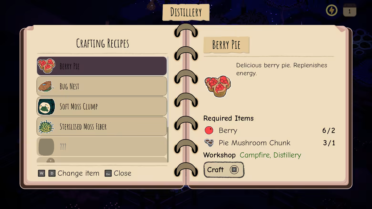 The player can advance to the next part of the day when they feel ready. Explore and craft during the day.