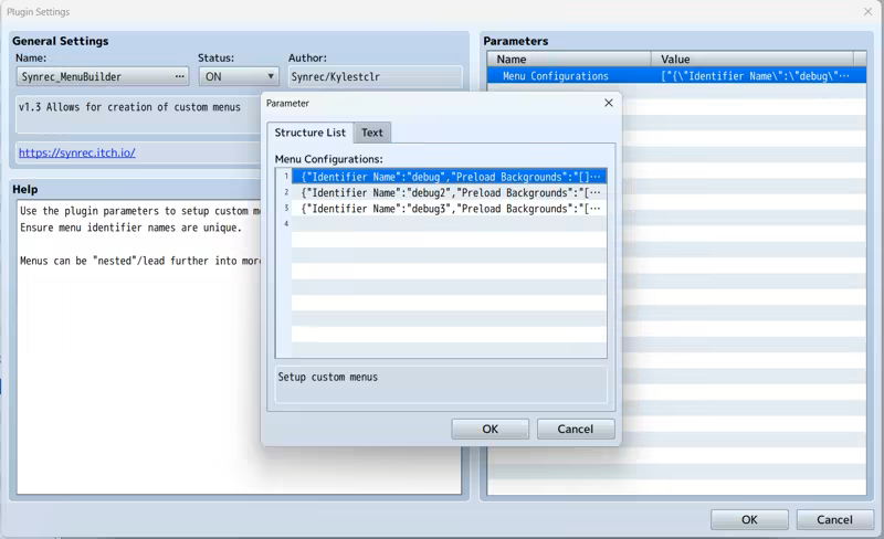 Custom menus must be setup in the plugin parameters prior to calling them in game.