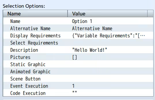 Static add a graphic over the scene backgrounds when the option is selected and animated graphic will change the graphic on scene to use the set data.