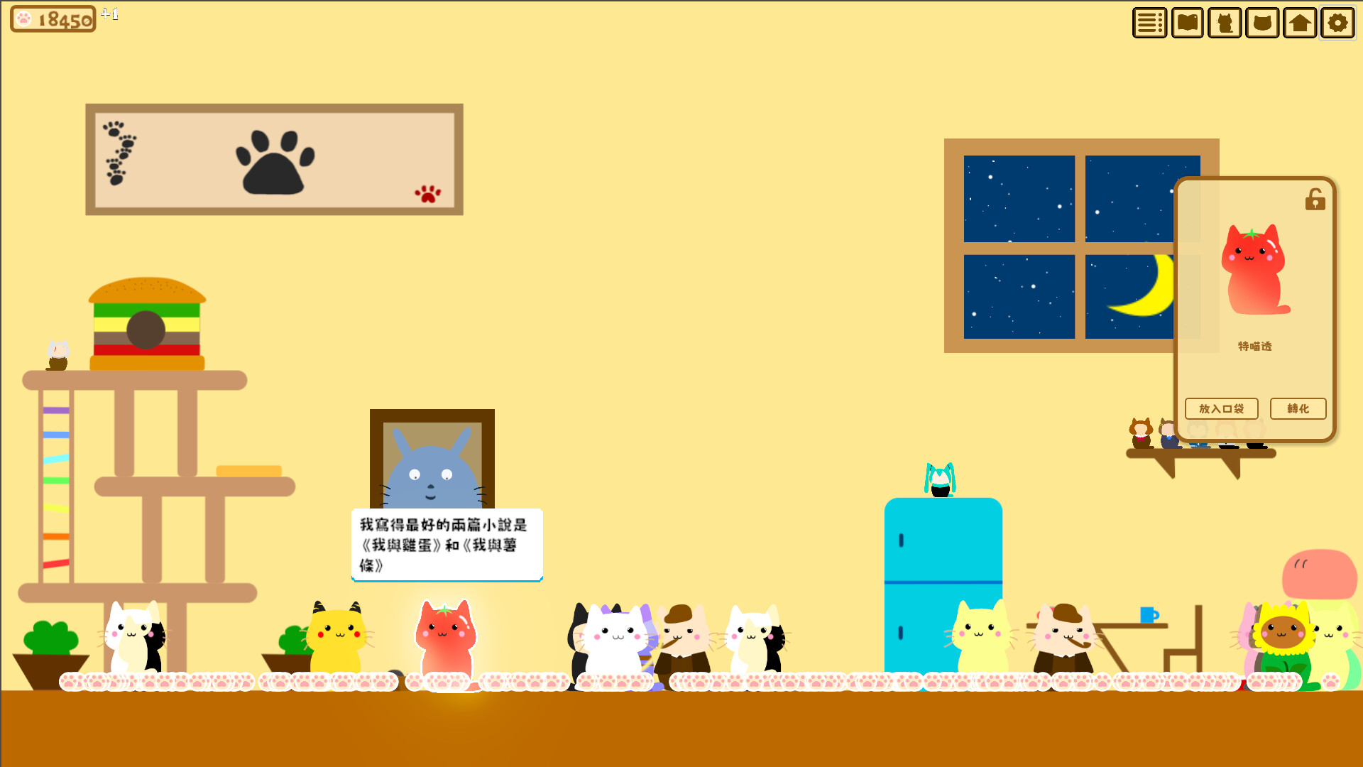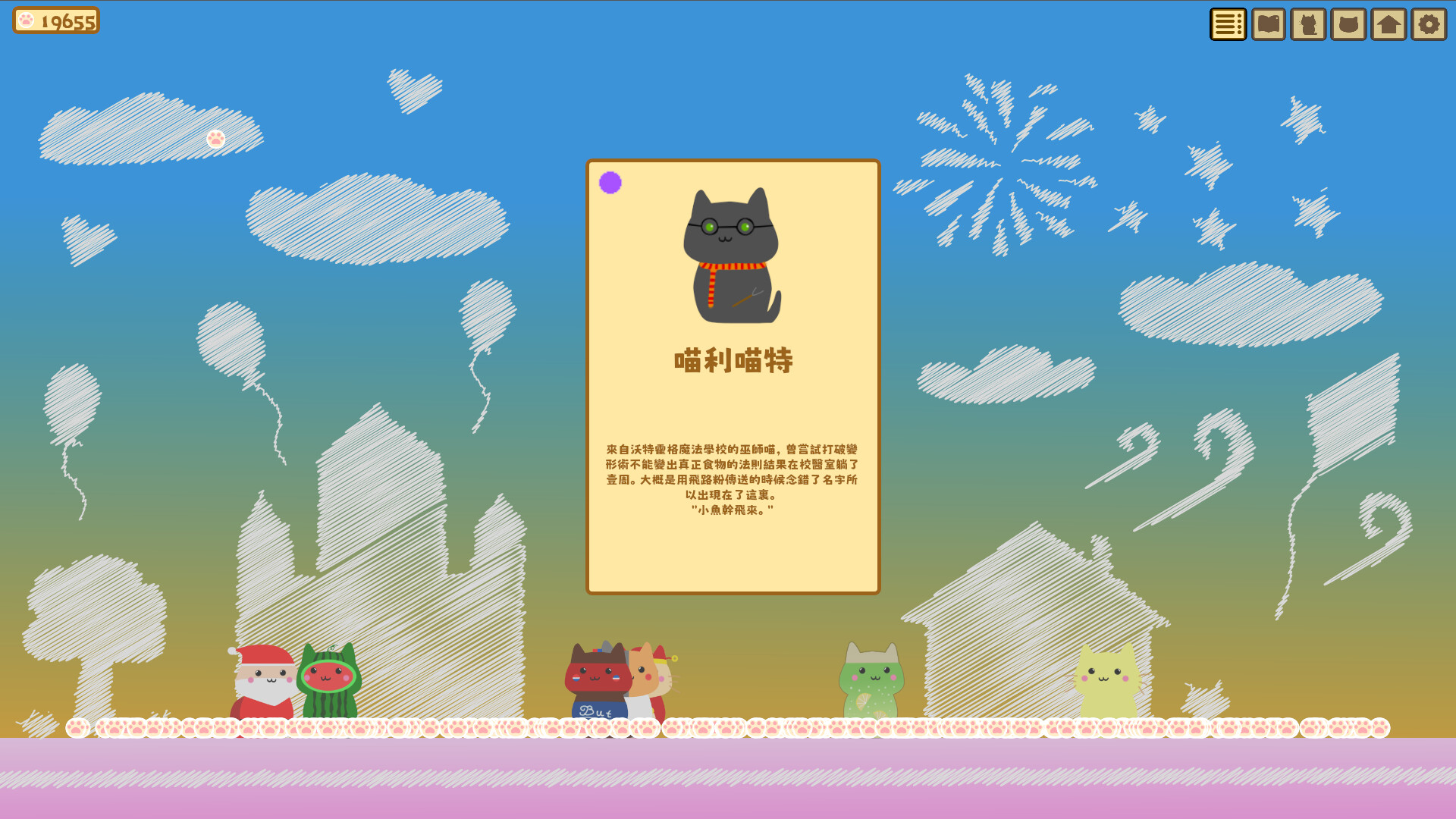 《貓貓蟲樂園》是壹款輕松有趣的放置遊戲,點擊場景中央的魔法陣可以召喚出各種有獨特形象和設定的貓貓蟲,收集場景中貓貓蟲們掉落的爪爪球,可以解鎖更多風格的場景、有趣的功能和經典的小遊戲,以及召喚更多的貓貓蟲。