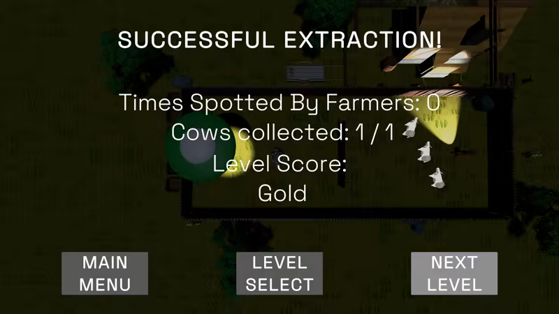 Top down stealth based puzzle game about an alien stealing cows from a farm. Use futuristic gadgets and stay in the shadows to avoid detection. Get all golds in every level to appease the queen and bring honor to your colony!