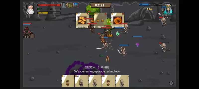 • Unit and Technology Upgrades: Choose from a variety of units and use resources to upgrade randomly appearing technologies to enhance your combat power.