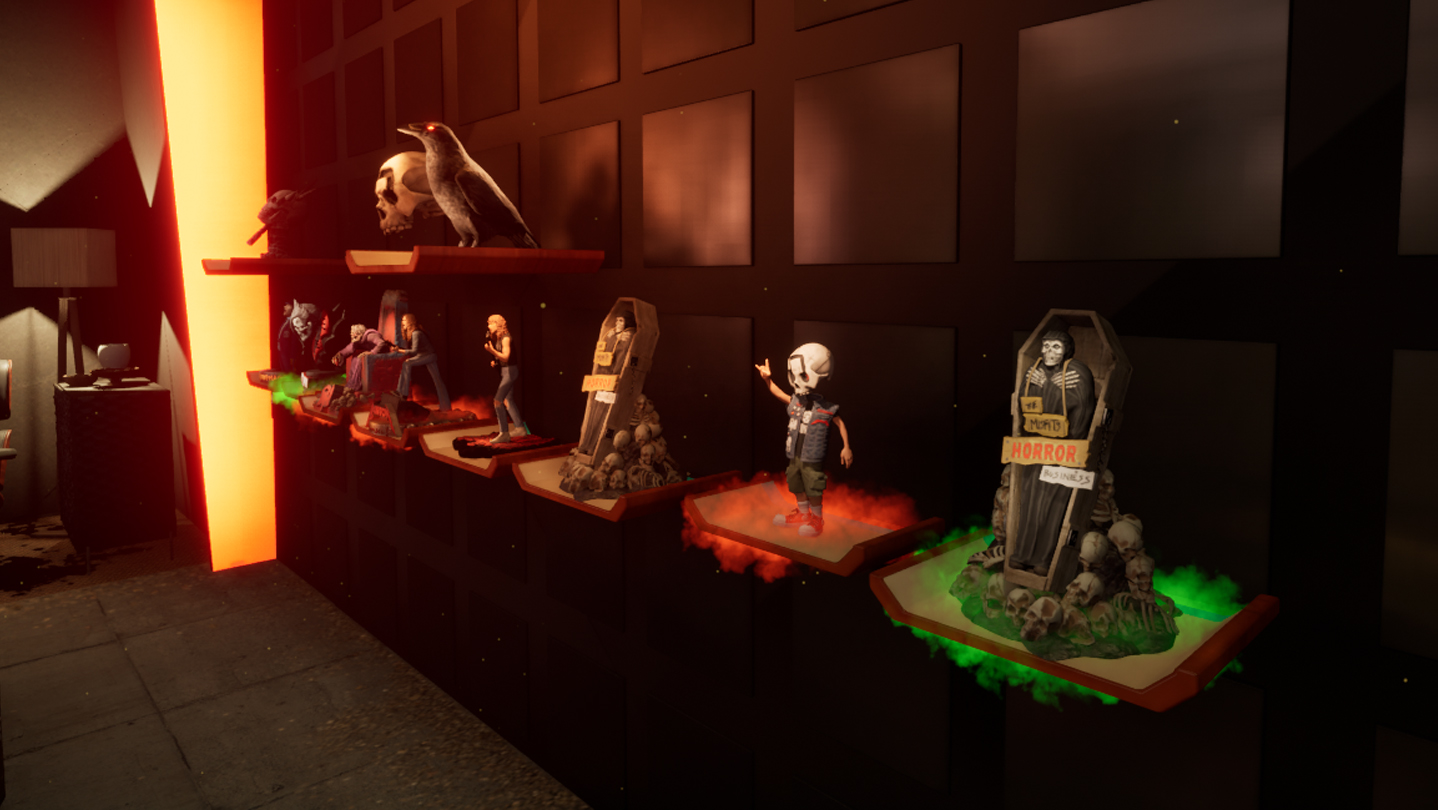 KnuckleBonz Metaverse Music Experience features iconic imagery from the great bands of the last 50 years including album art, references to skulls, and other common horror themes.