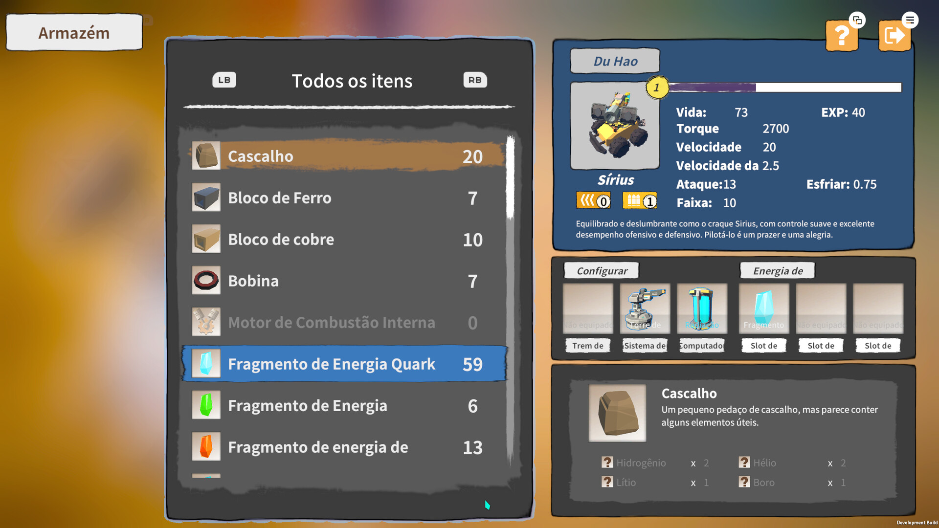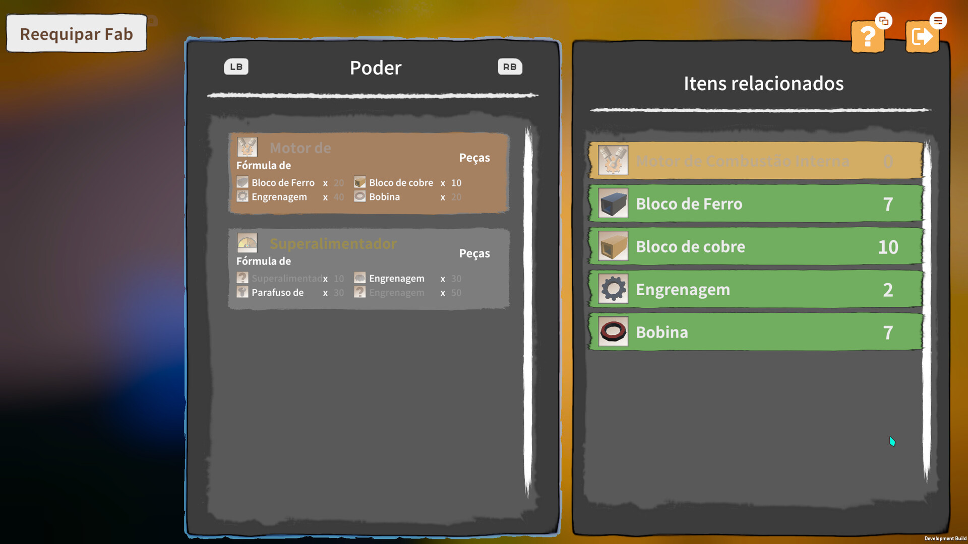 Monte ou sintetize equipamentos usando peças e fragmentos de energia de partículas.