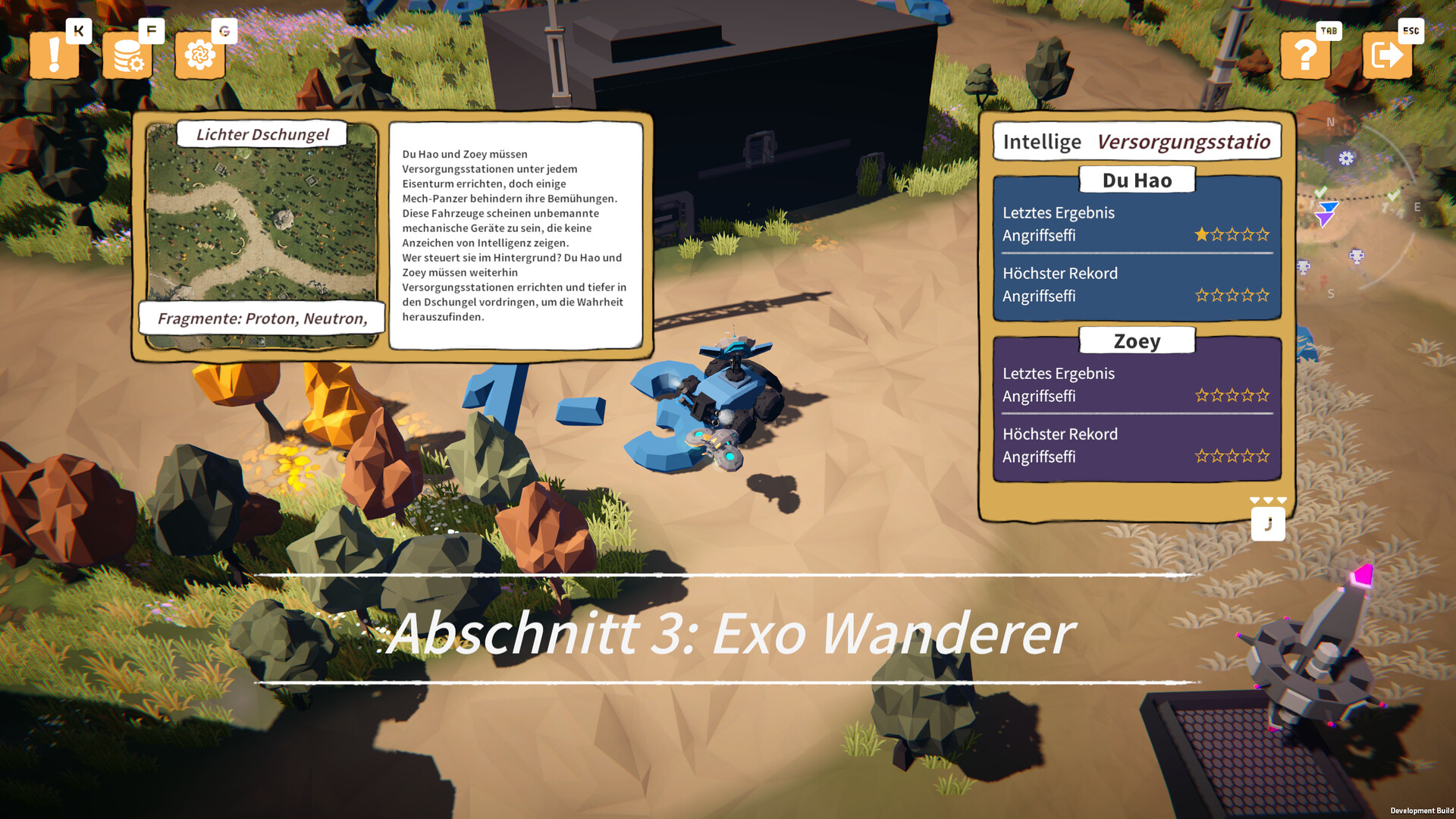 Die Geschichte spielt auf Gliese 667Ce, 22 Lichtjahre von der Erde entfernt, wo die Zivilisation der Erde in tiefer Krise steckt. Du kannst als Du Hao oder Zoey, einer der Exo Wanderers, spielen oder zusammen mit einem Freund auf demselben Gerät zwei Charaktere steuern. Jeder Exo Wanderer hat einen eigenen, einzigartigen Panzer. Erkunde diesen geheimnisvollen Planeten und finde einen Weg, die Zivilisation der Erde zu retten.