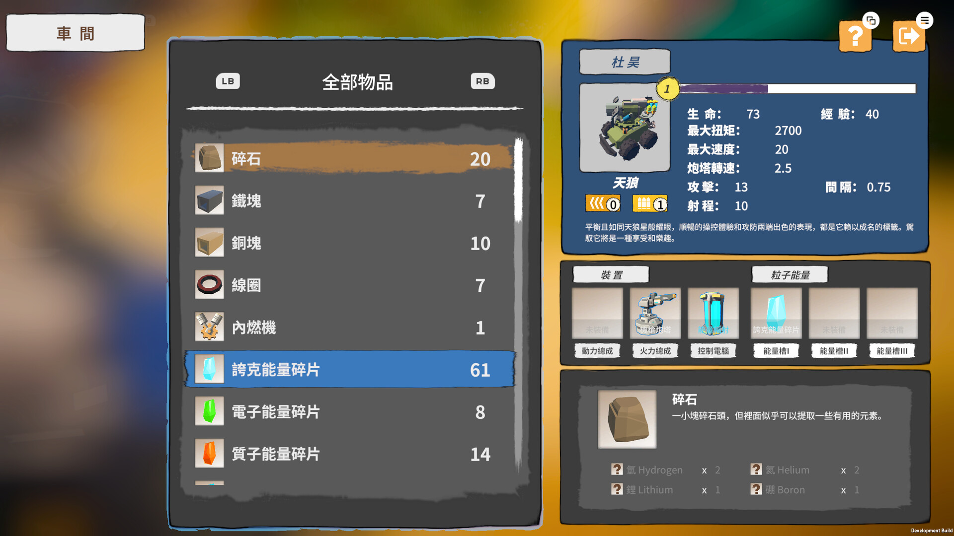 利用零件和粒子能力碎片,組裝或合成多樣化的裝備。