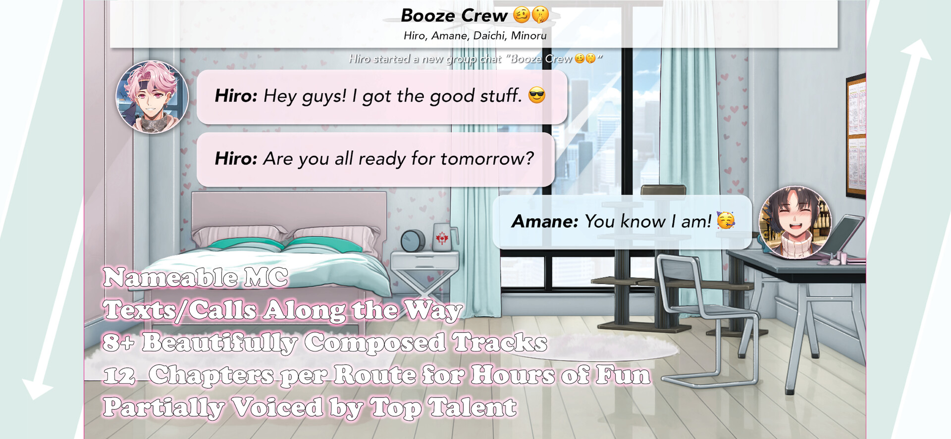 • Multiple Endings: Enjoy three unique endings per route - Two successful endings, dramatic and serene, with exclusive CGs to collect, and one break-up ending!