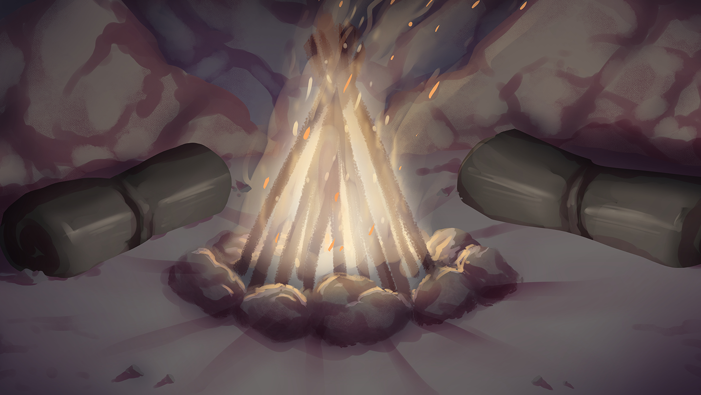 Tomorrow's the big day. Tomorrow is when you and your team will slay the evil entity that's posing a danger to all of Utril. With such a menacing foe lying in wait, you should be fast asleep. However, thoughts and pesky feelings keep flooding your mind, rendering you unable to sleep. Leaving your tent, you go sit by the campfire alone to stew in your thoughts.