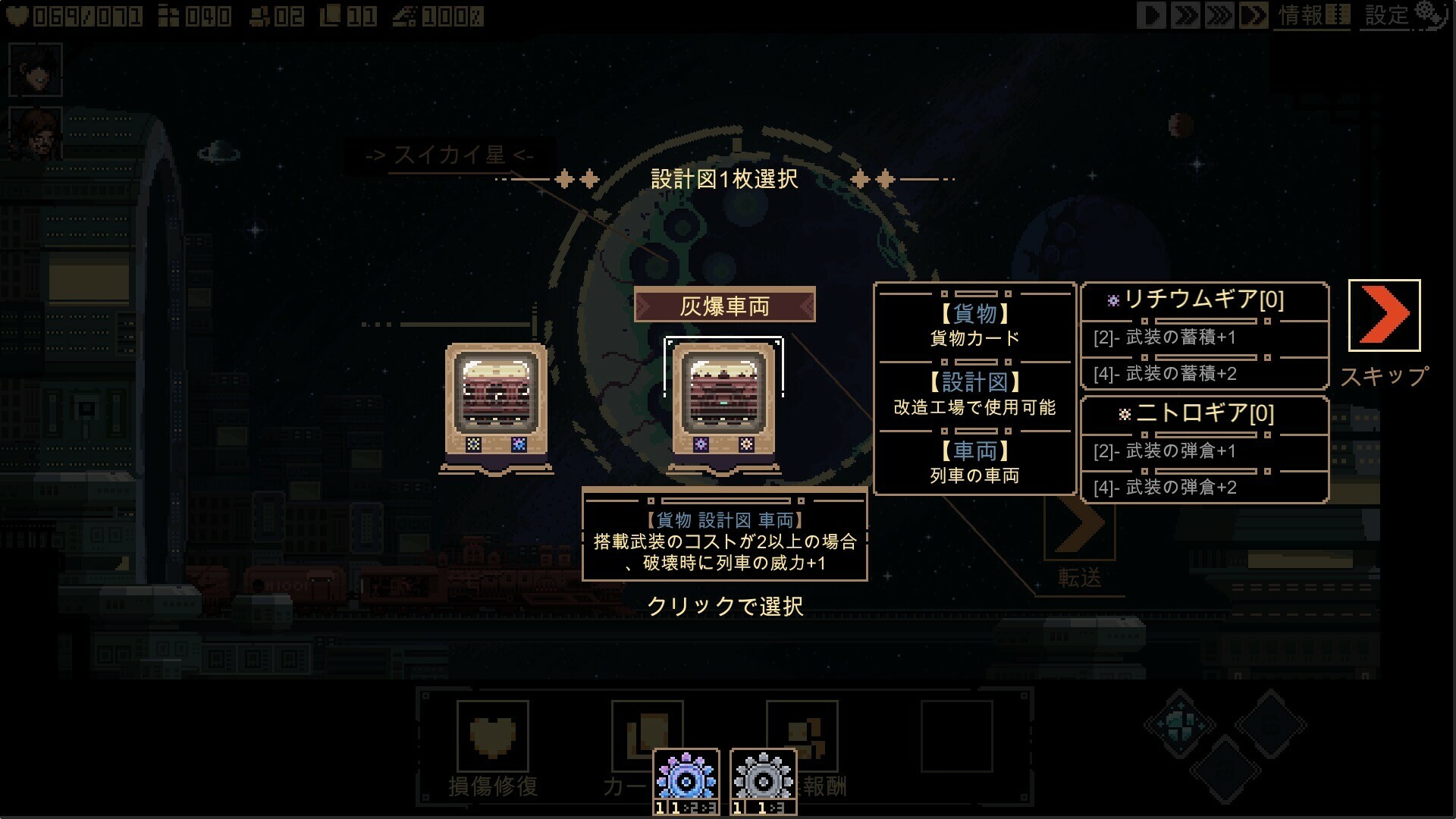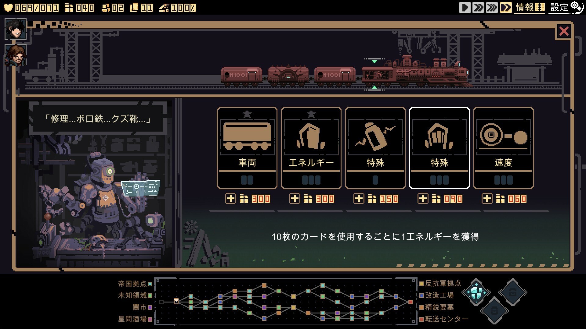 シージ ブレイク Demo は、列車をテーマにしたデッキ構築型ローグライクゲームです。