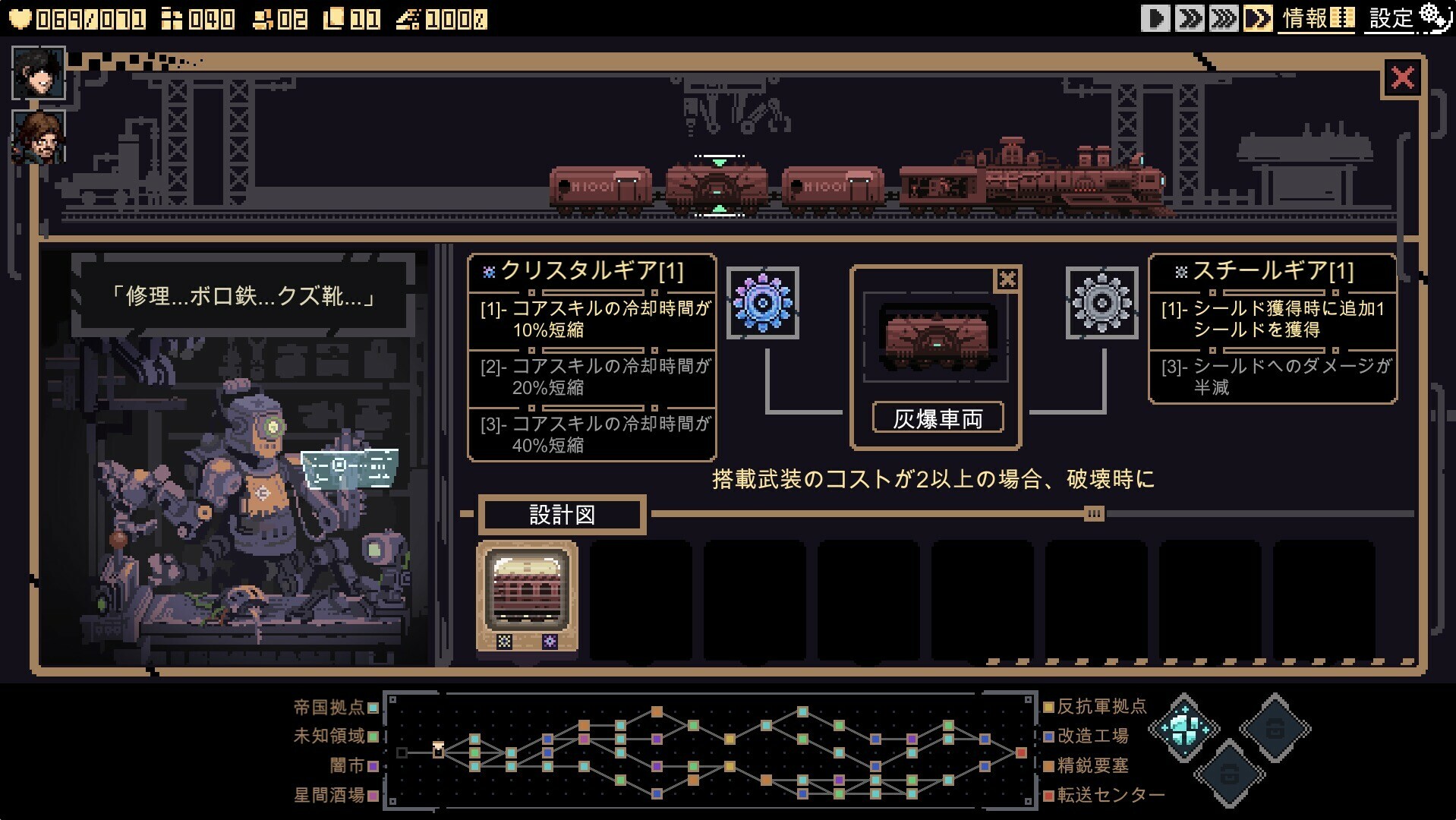 シージ ブレイク Demo は、列車をテーマにしたデッキ構築型ローグライクゲームです。