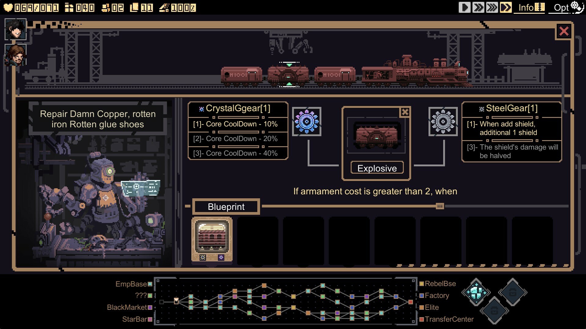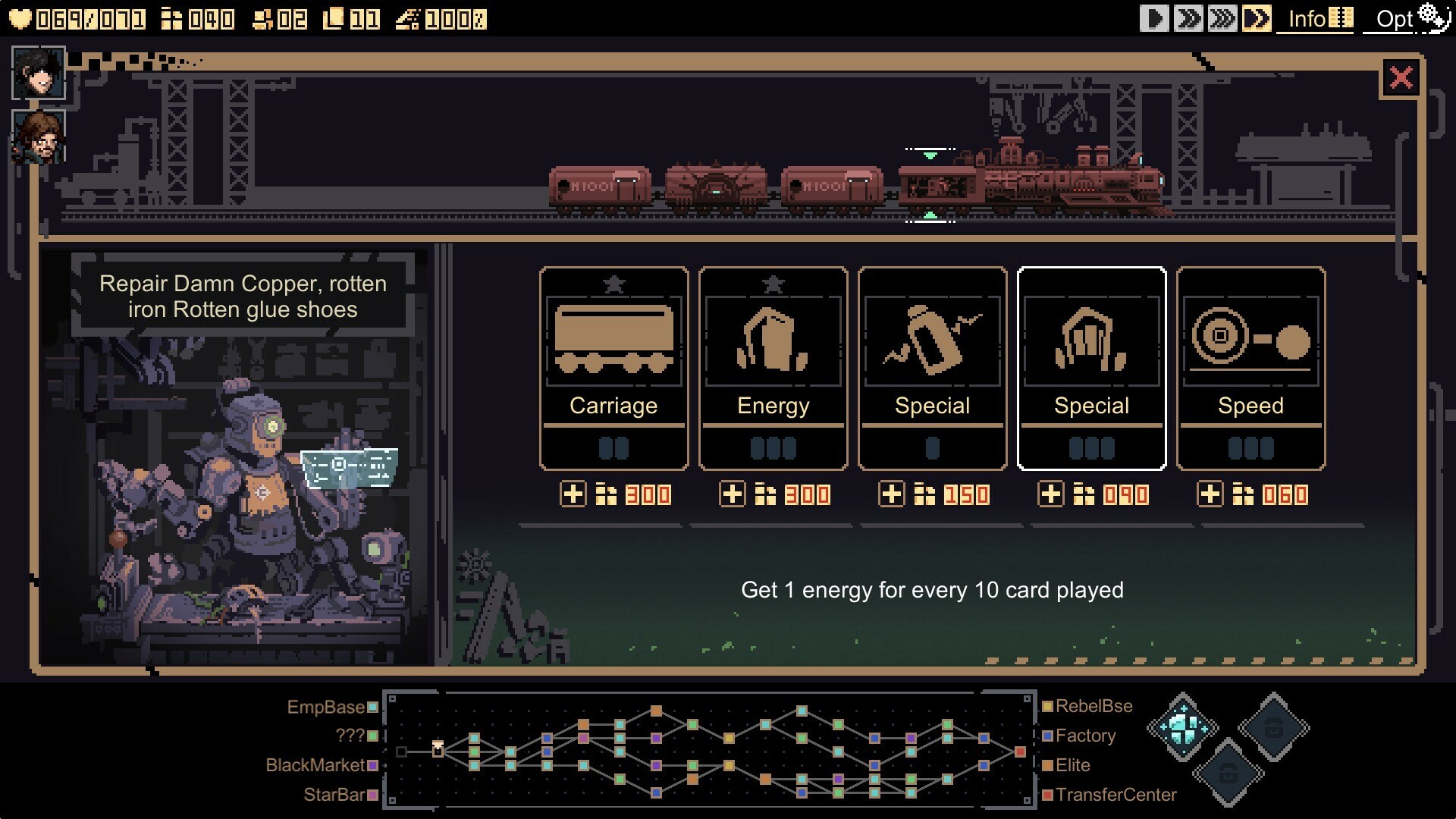 ・Each playthrough is a new procedurally-generated adventure, traveling from planet to planet in a variety of styles, encountering all sorts of unexpected events, acquiring equipment to strengthen your train, and recruiting all sorts of mercenaries to join your team.