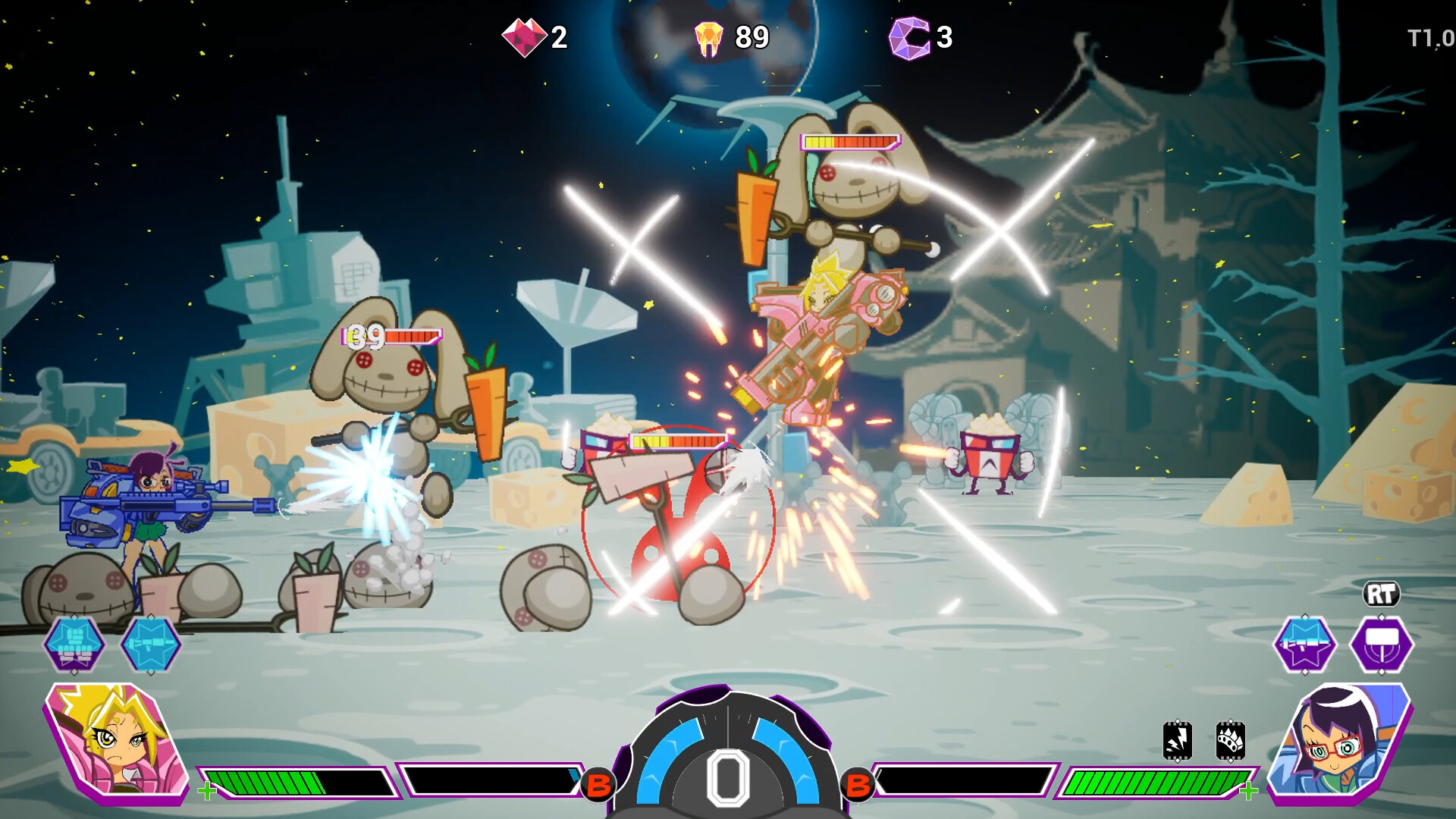 Choose from 4 playable characters, and customize abilities with randomly appearing chips found throughout each stage.