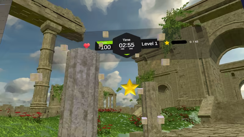 TrainingTiles is an VR game with 5 rhythmic mini-games that aim to make the player have fun while exercising. Check the calories burned and compete to get the best scores.