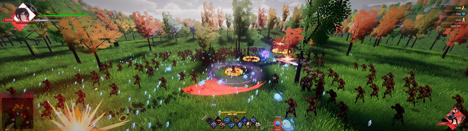• Unique characters with individual skills and upgrades that synergize with different builds