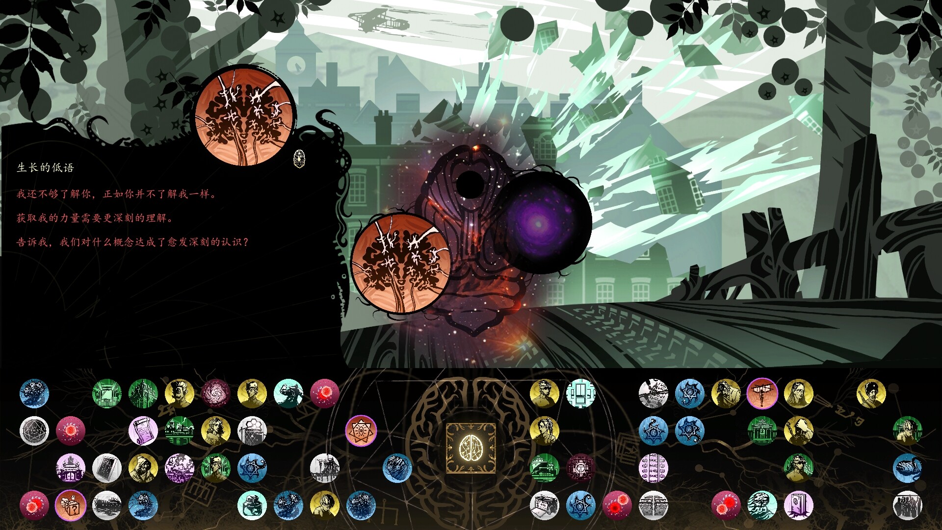 你将通过掷骰这一充满随机性的机制来获取线索碎片,在混沌无序的世界中摸索,试图抓住那一丝真相的曙光。从含混不清的呓语, 古老建筑的隐秘符号中,收集数百条线索。这些线索看似零散且毫无关联,如同梦境与幻象,但每一条都可能是解开谜题的关键。