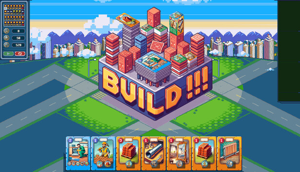 Build your city one card at a time in this strategy game with charming pixel art. Craft your deck, play resources, use wild cards, and construct unique buildings. Every decision counts on your path as a builder... or a destroyer.