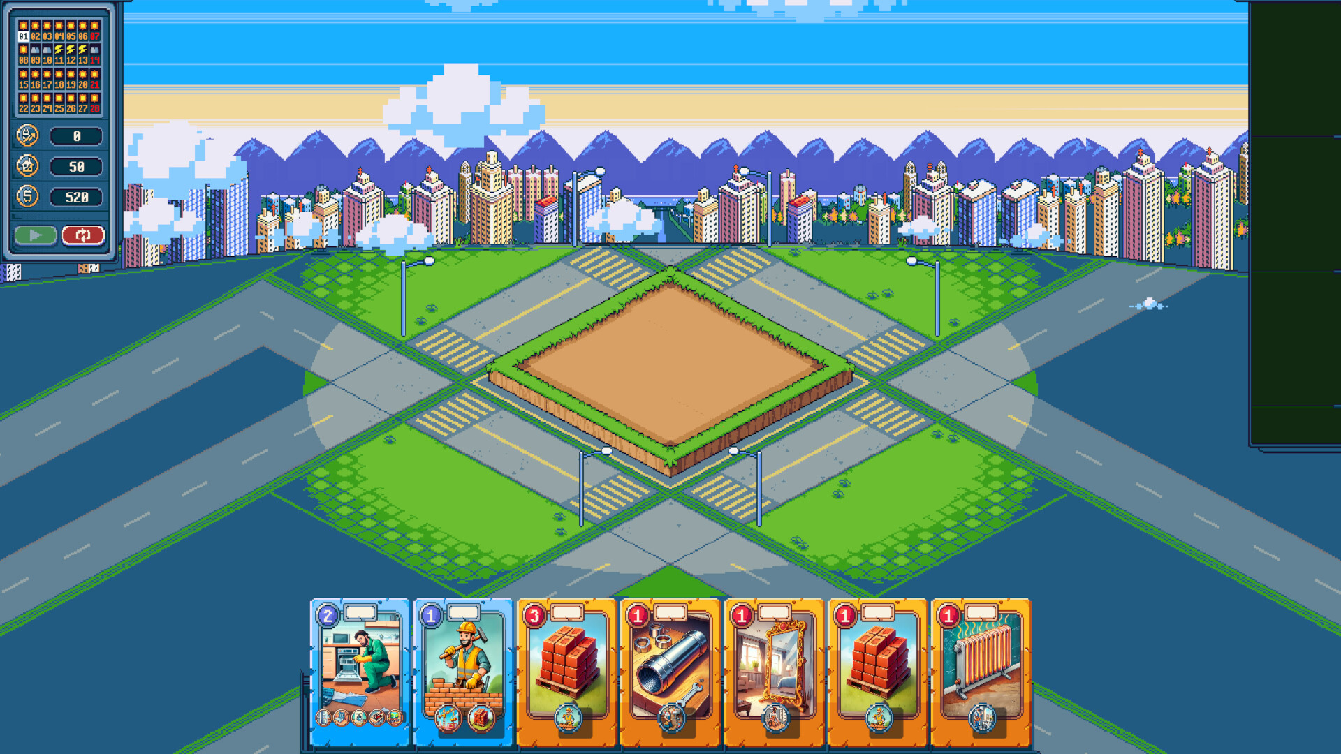Build your city one card at a time in this strategy game with charming pixel art. Craft your deck, play resources, use wild cards, and construct unique buildings. Every decision counts on your path as a builder... or a destroyer.