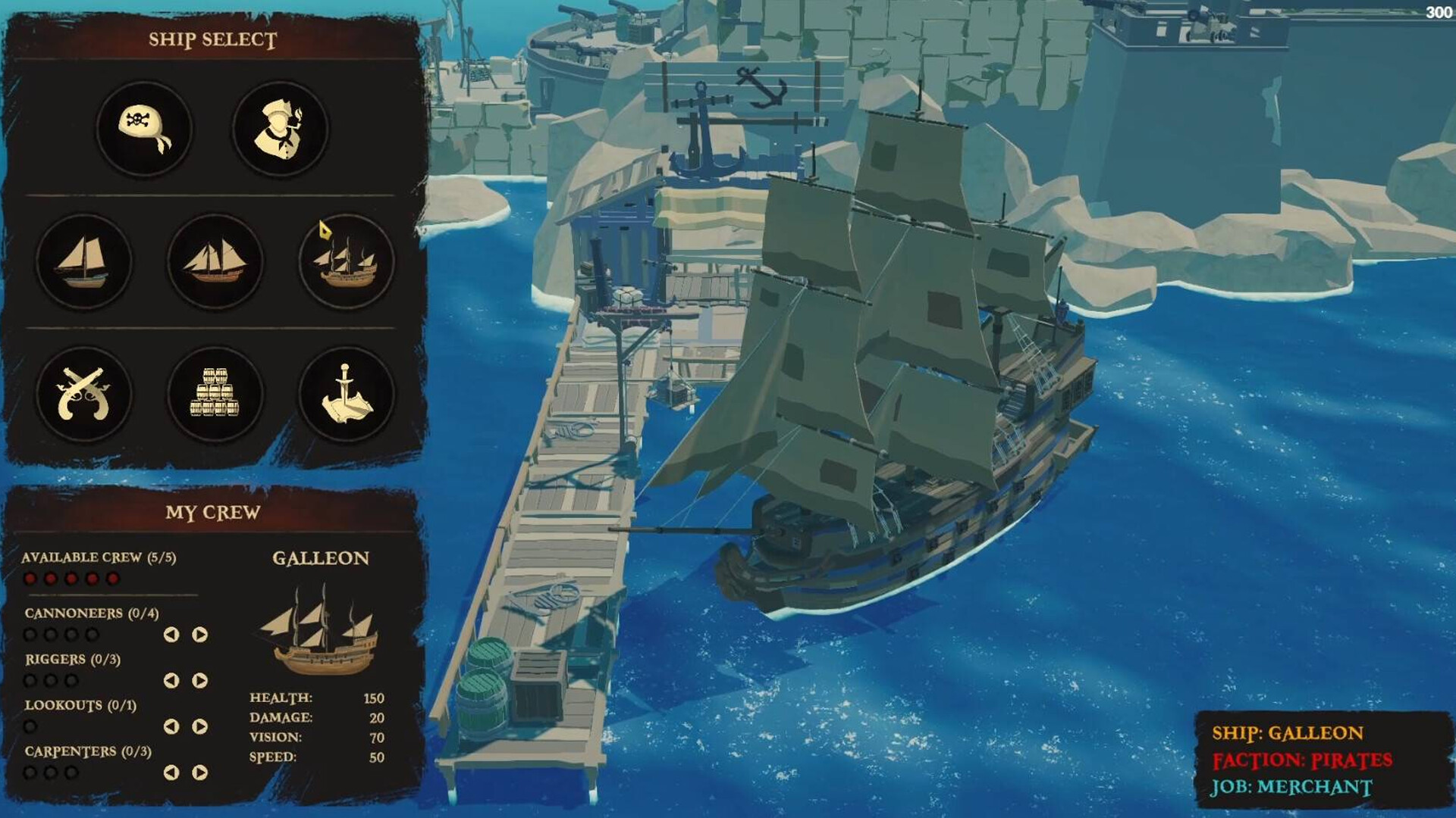 • Manage your crew, giving them tasks like fishing, treasure hunting, and resource gathering.