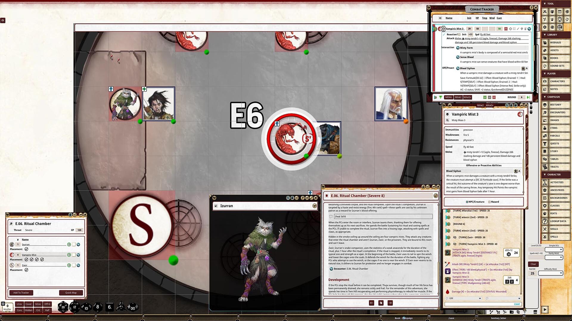 • Tokens for each encounter are all pre-placed in starting locations on the map. You can edit these on the fly.