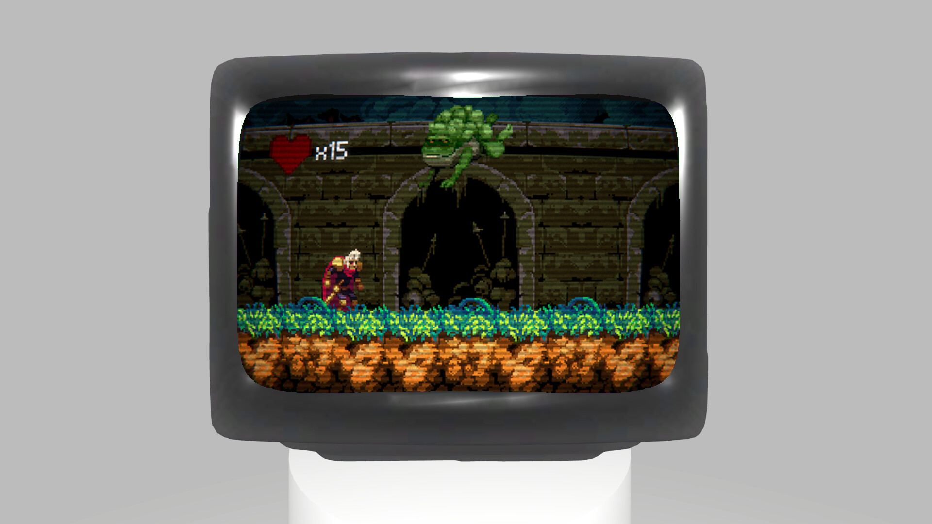 It is an old-school action platformer game. Defeat your enemies to reach the end of the game.