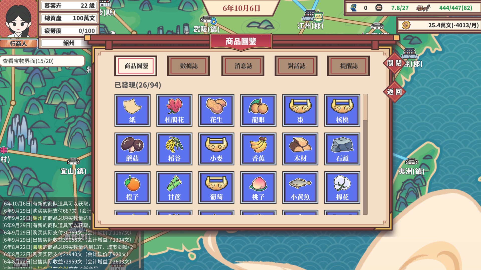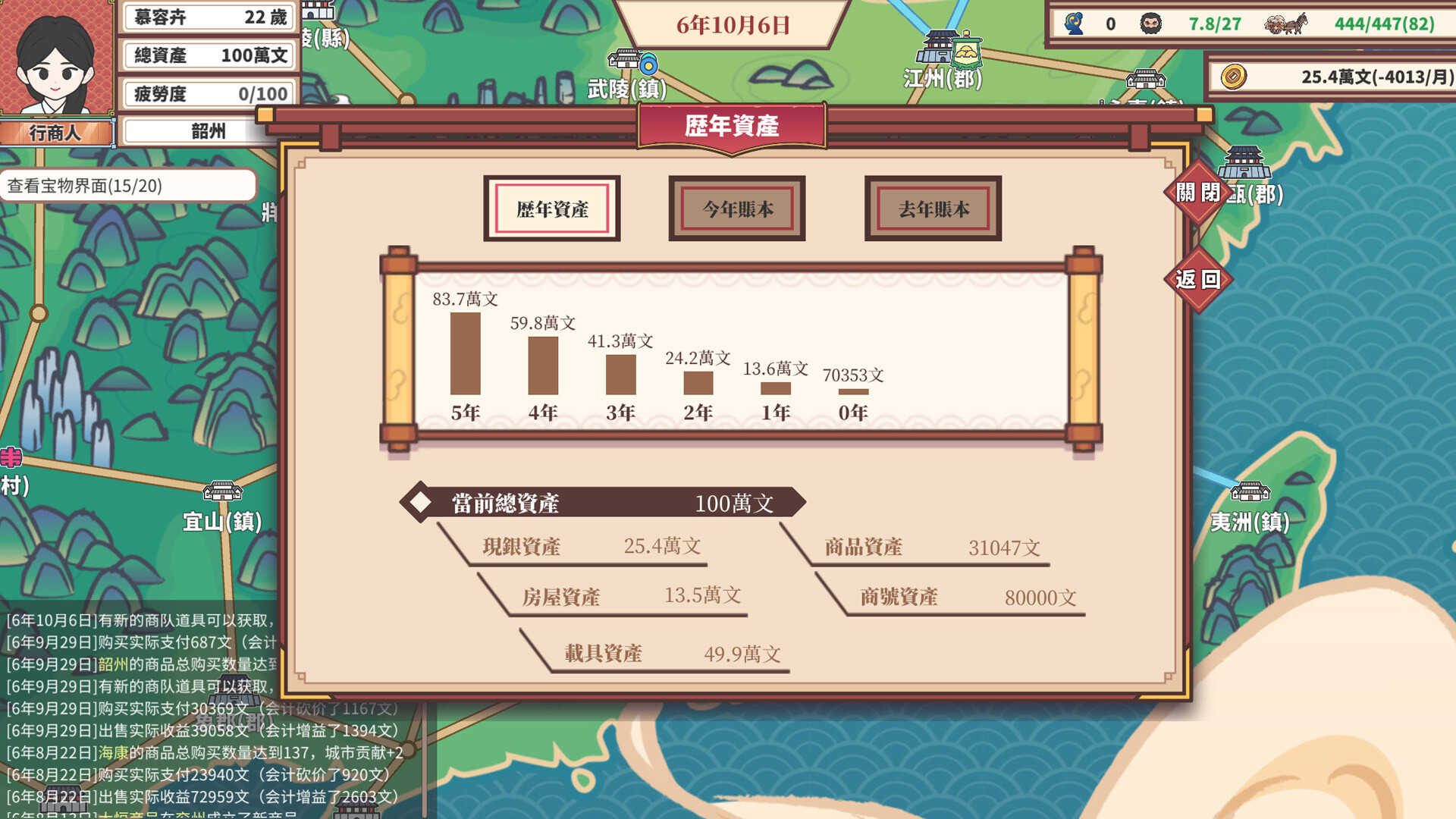 每年的資產變化、每年的收支、買賣最多的商品、去過最多的地方,都會記錄在游戲中的數據系統,數據記錄著你一路走來的艱辛與成就。當你鑄就自己的貿易帝國時,回頭看這些真實記錄時,想必會别有一番感慨吧!